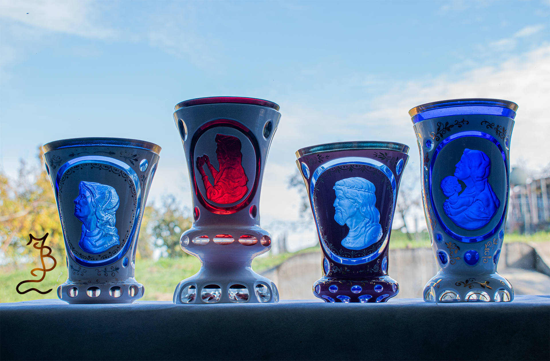 Többrétegű biedermeier stílusú poharak