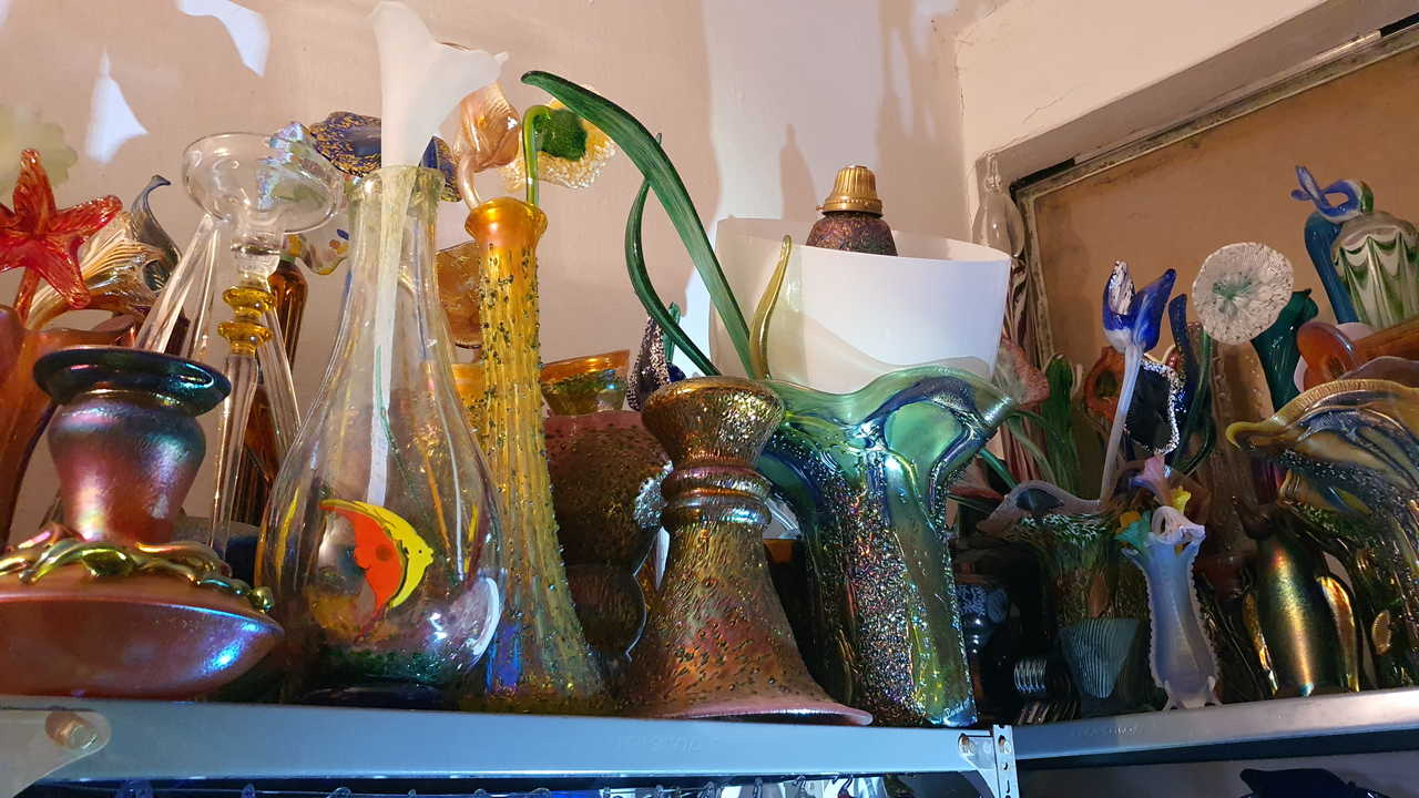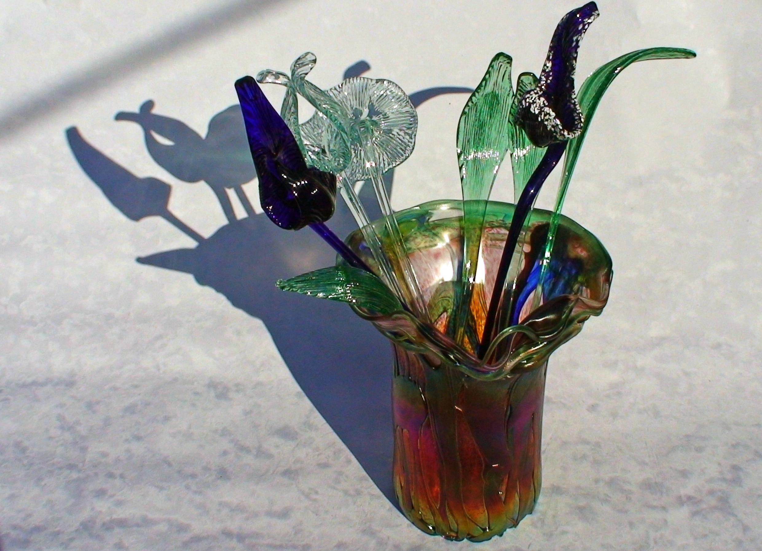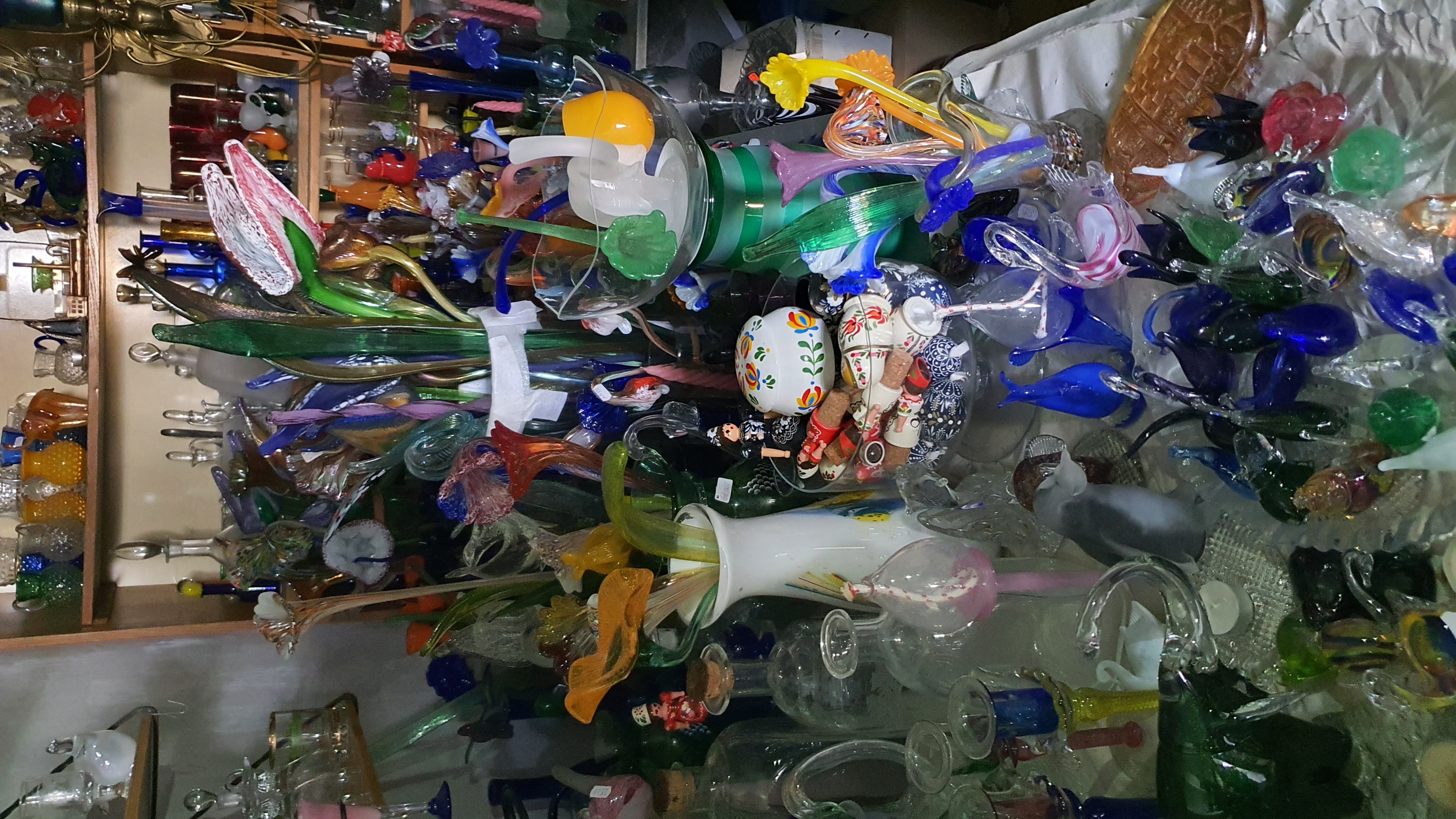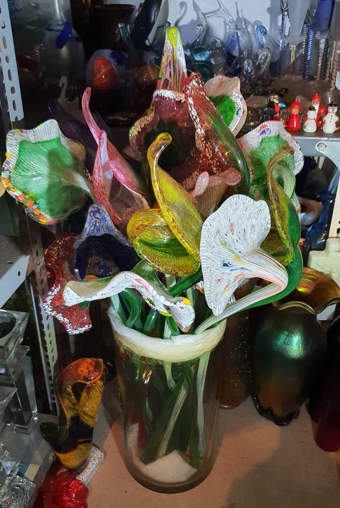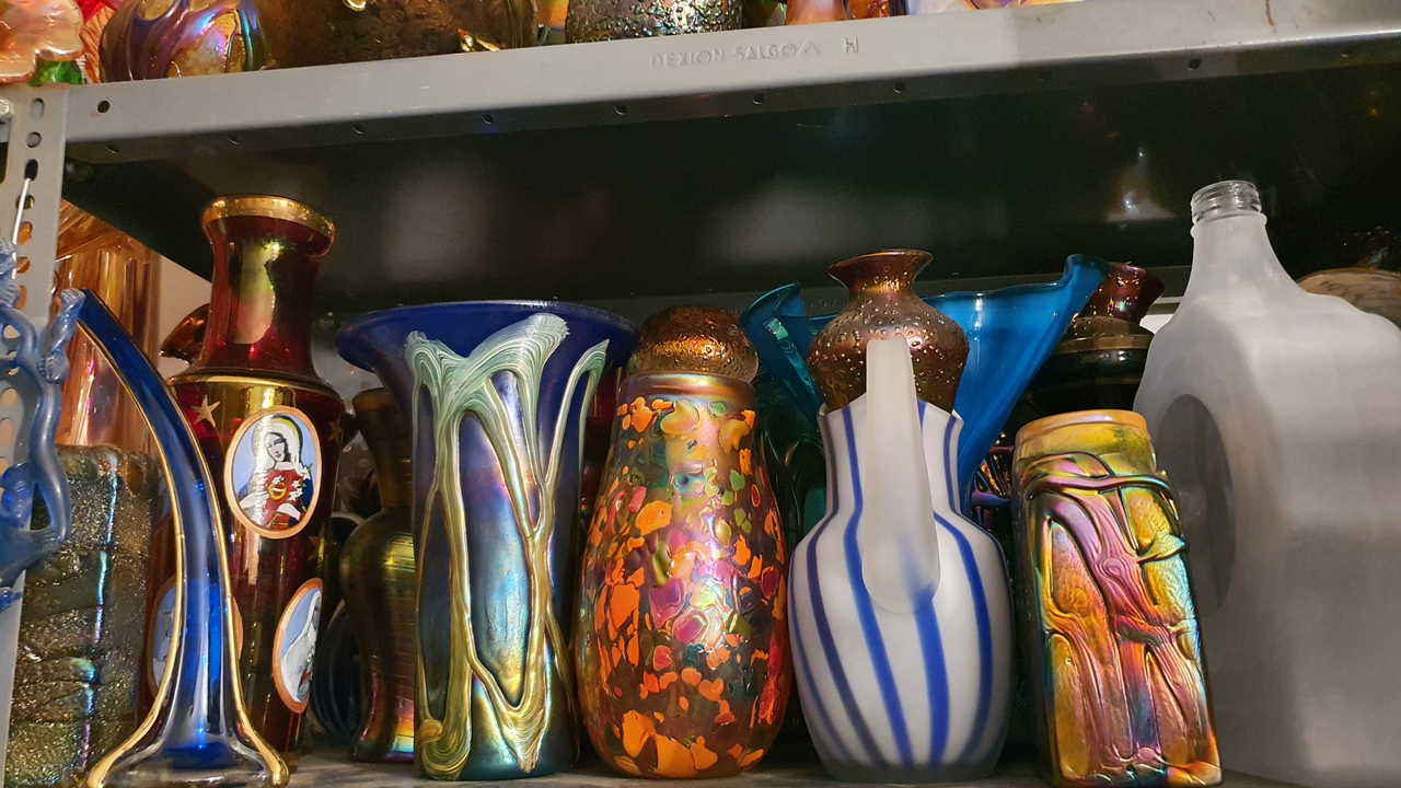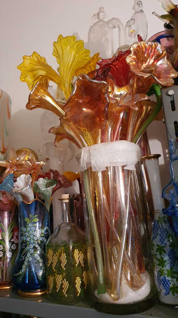 Irizált üvegek, üveg virágok