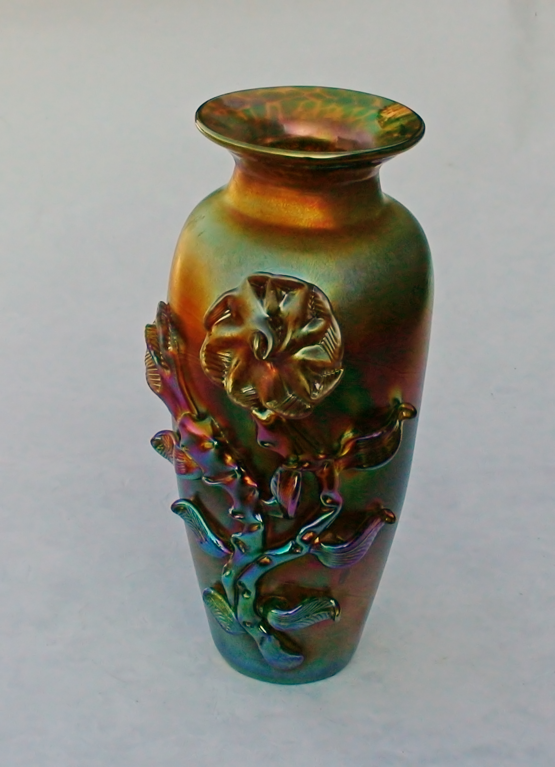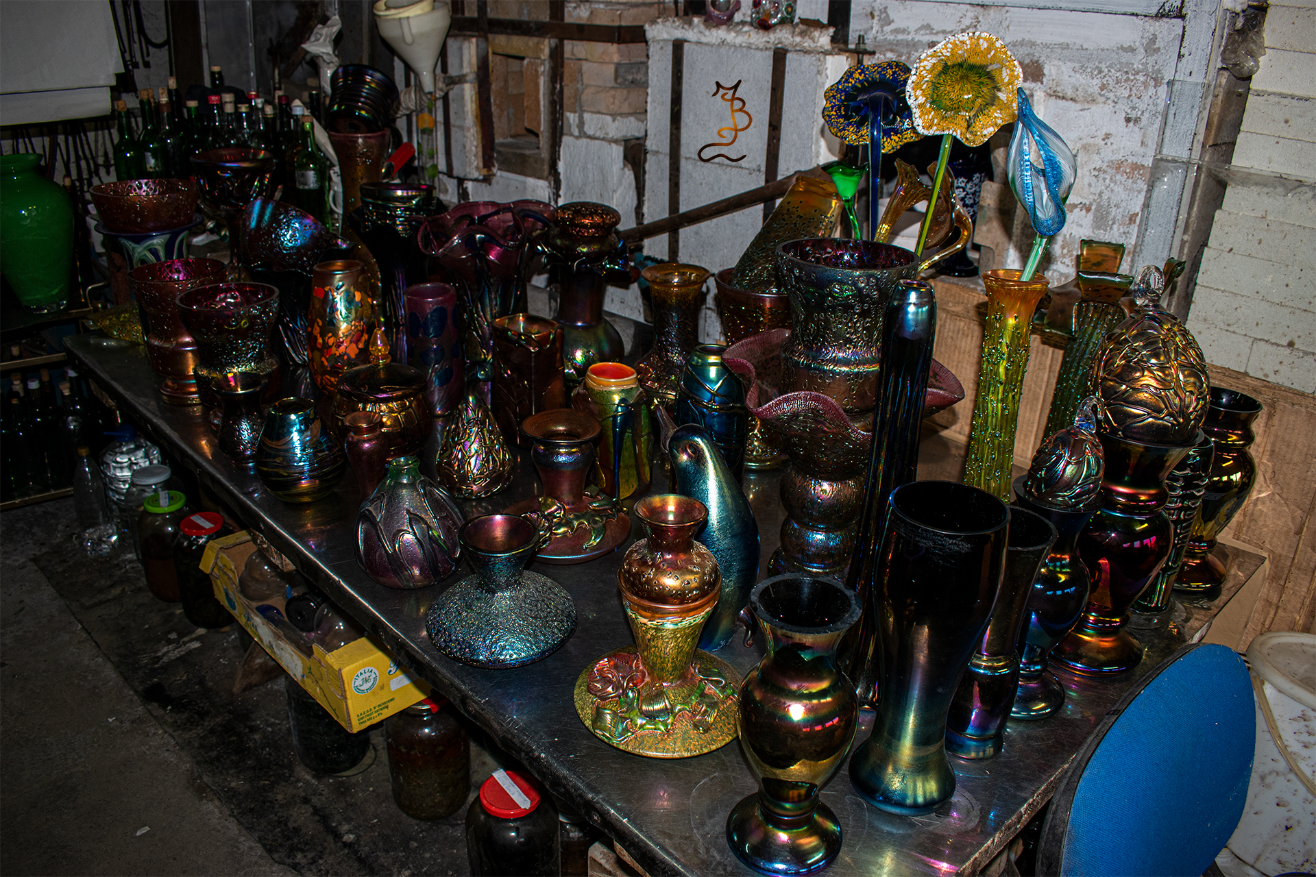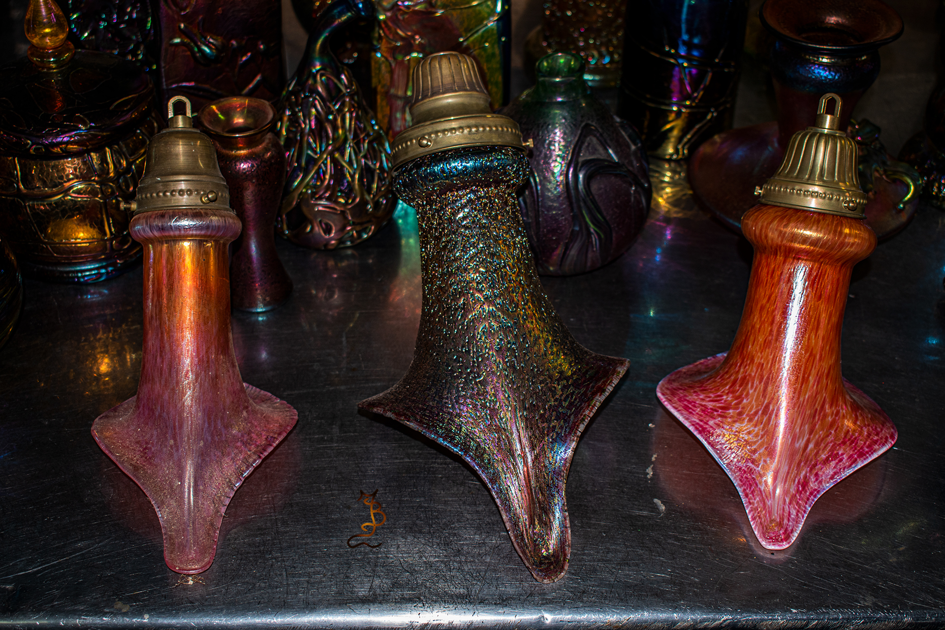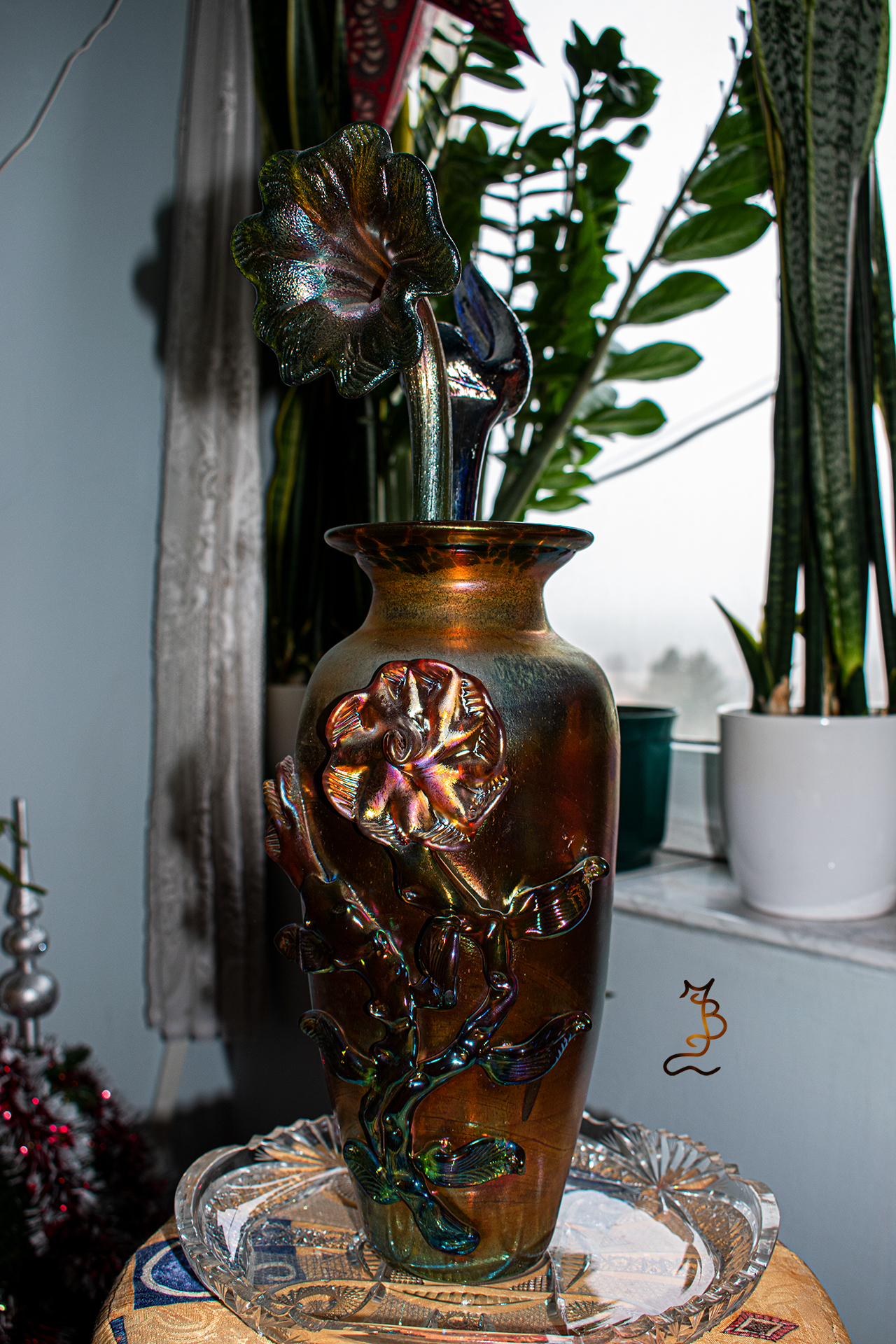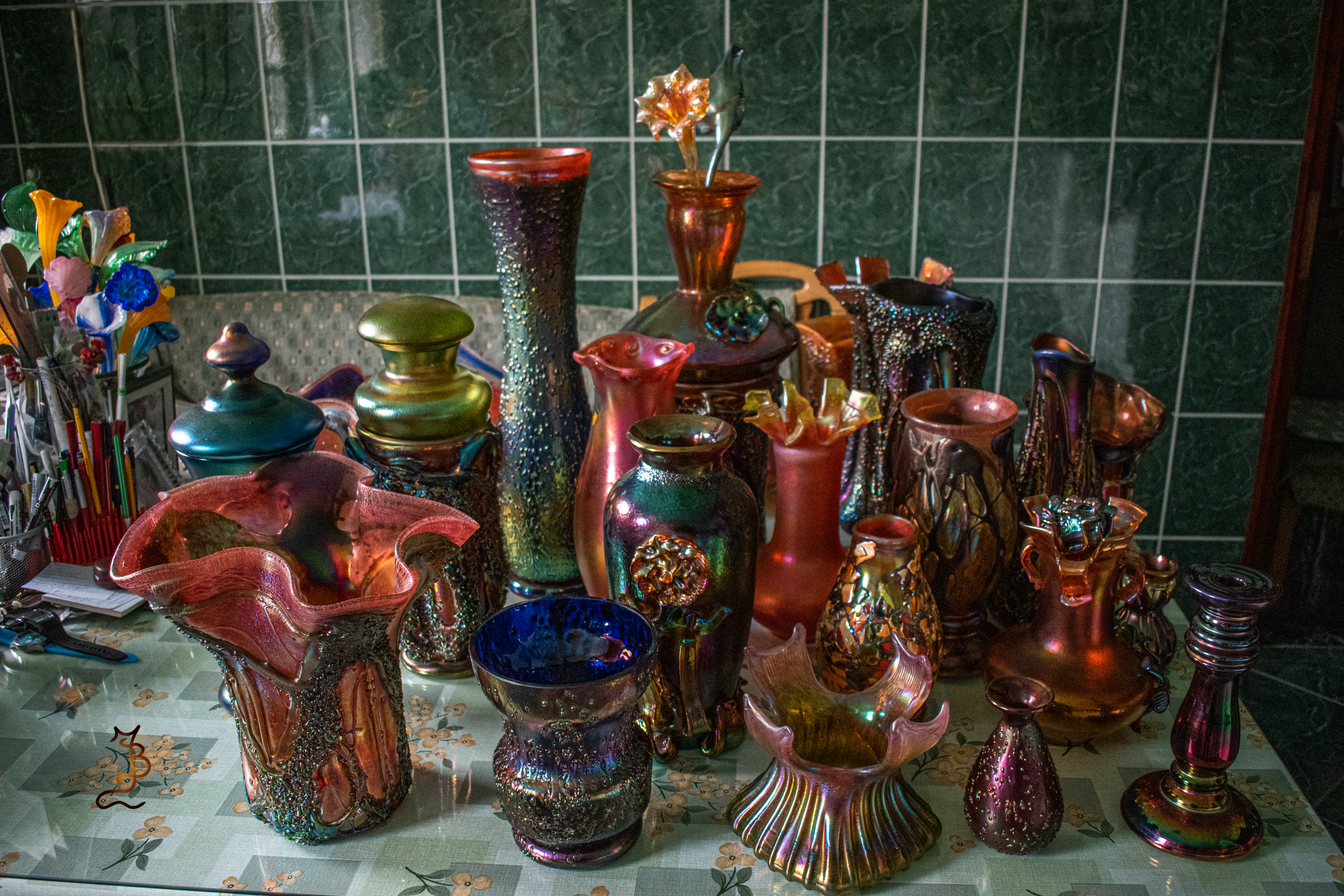 Irizált üvegek, üveg virágok