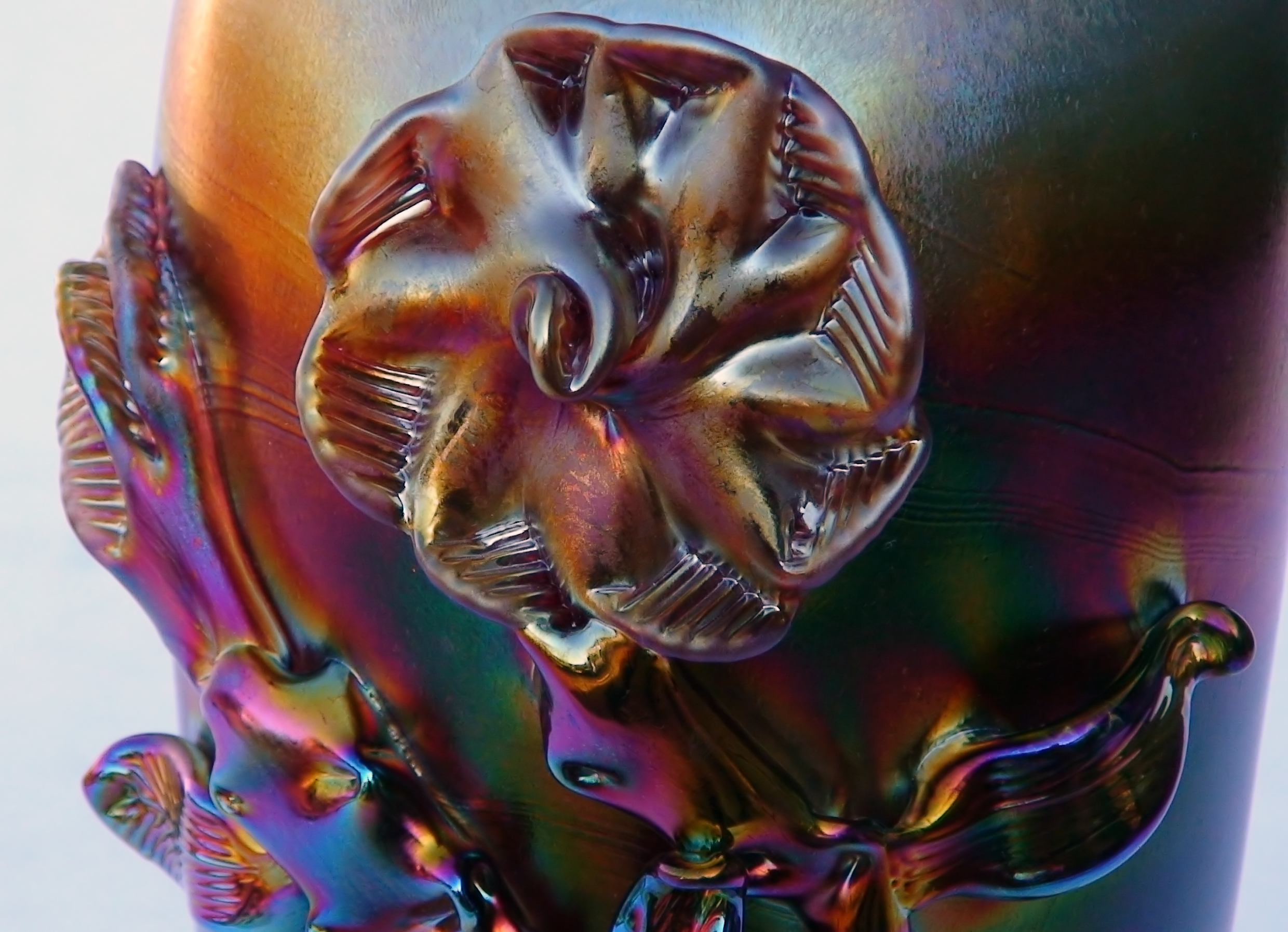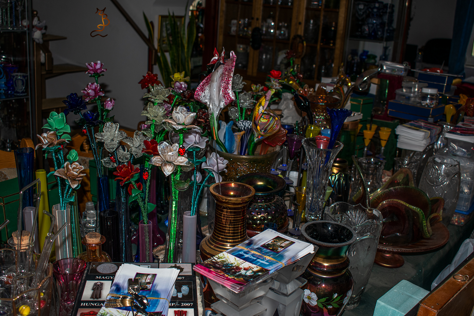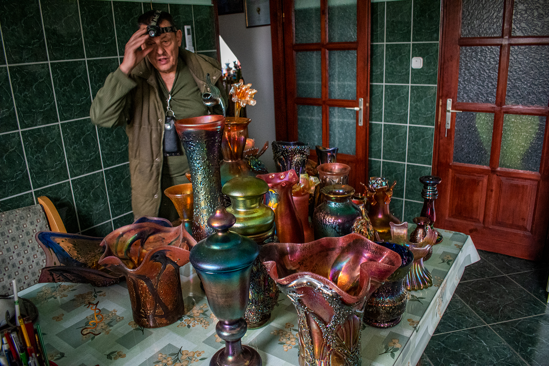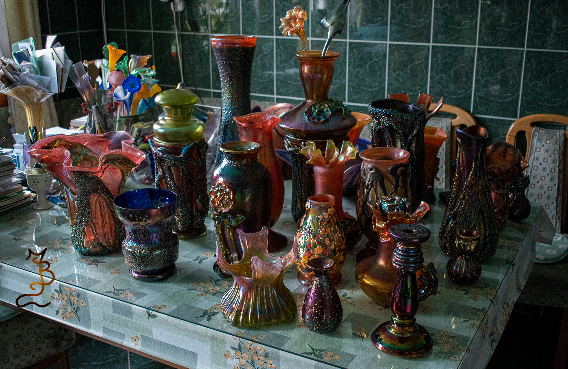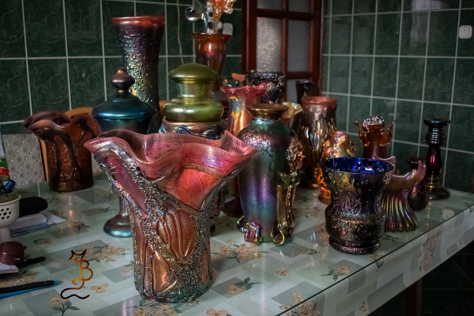 Irizált üvegek, üveg virágok