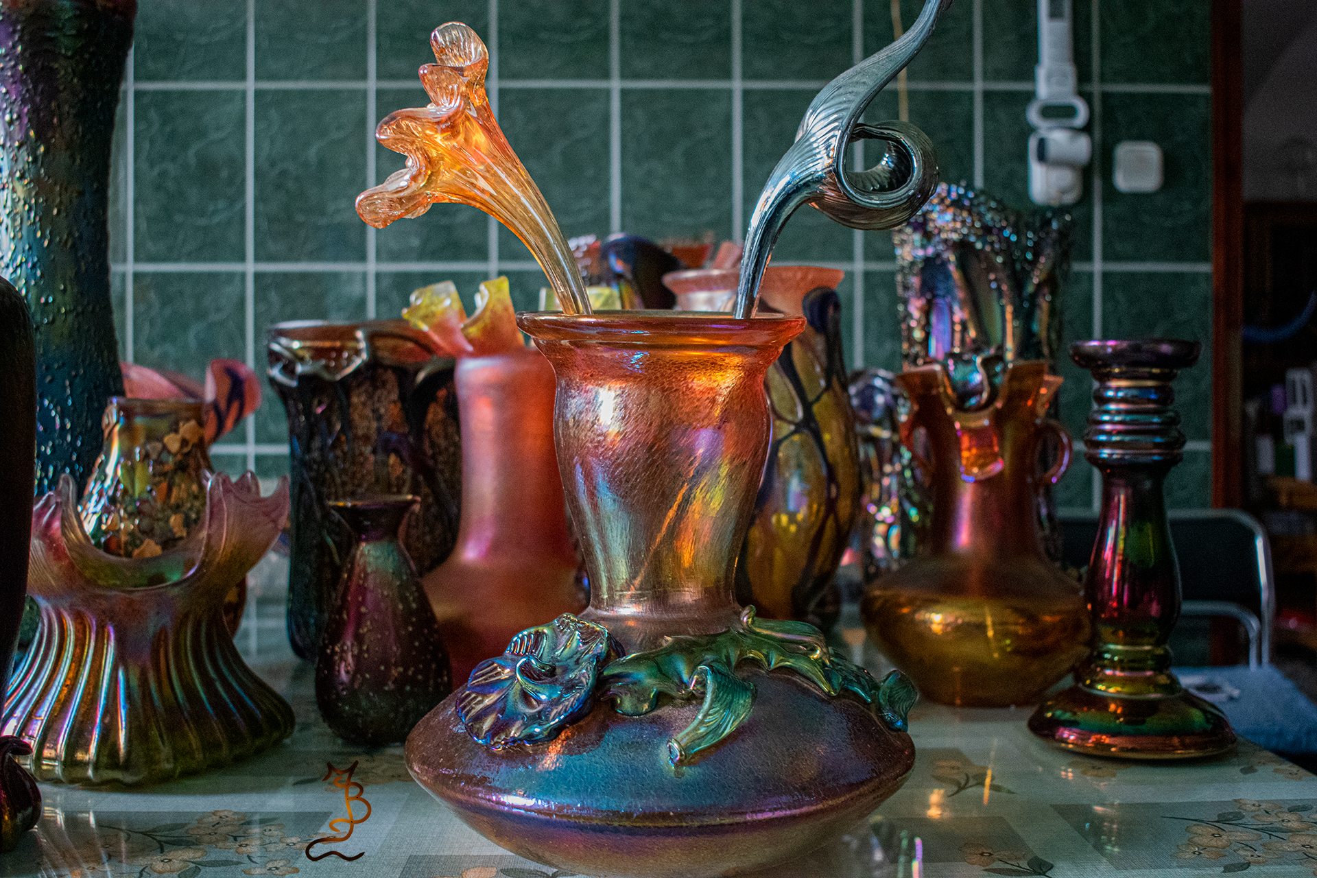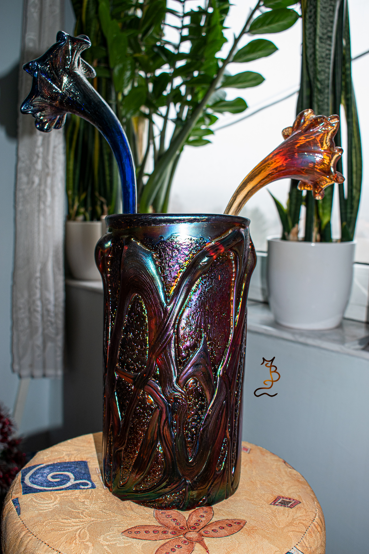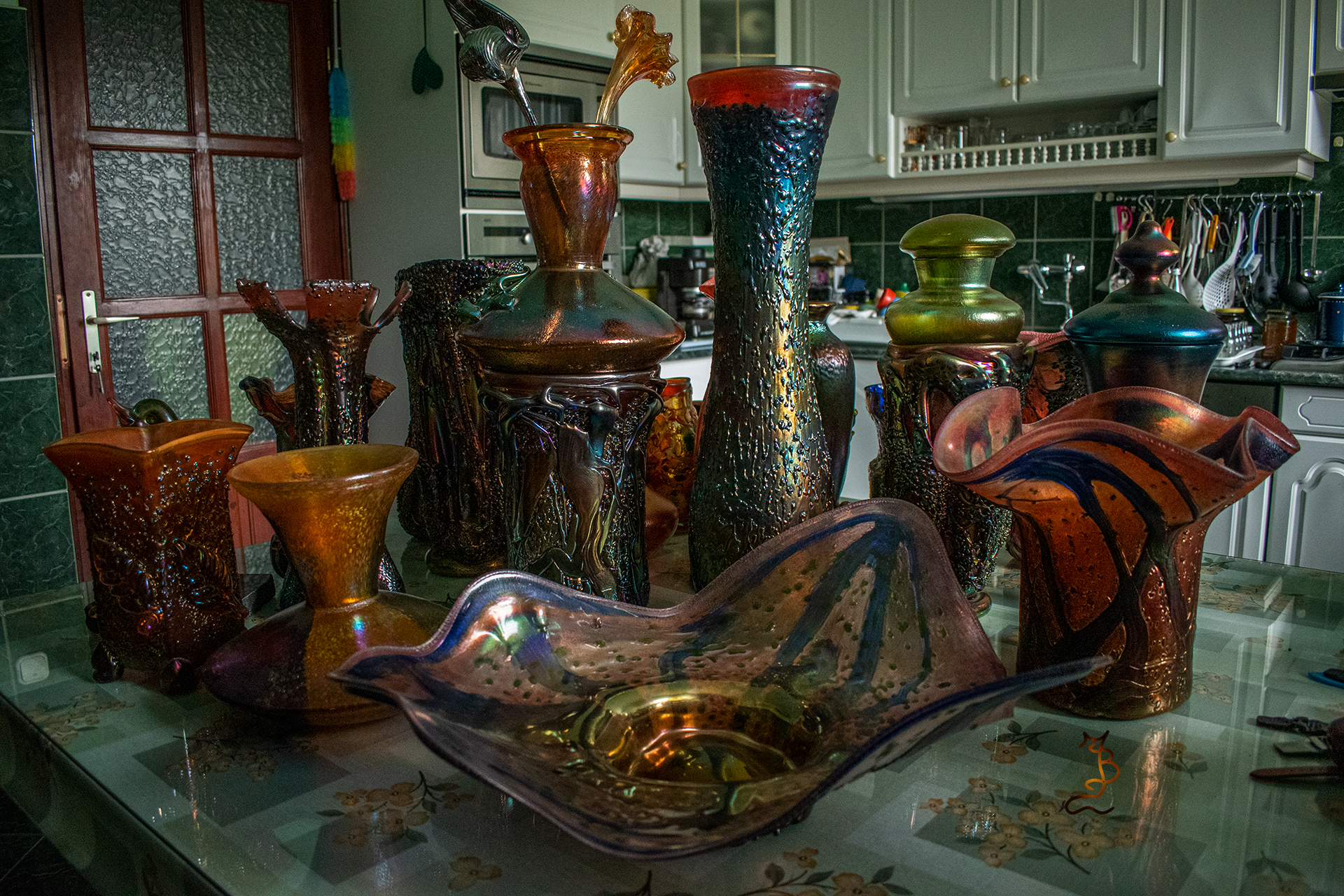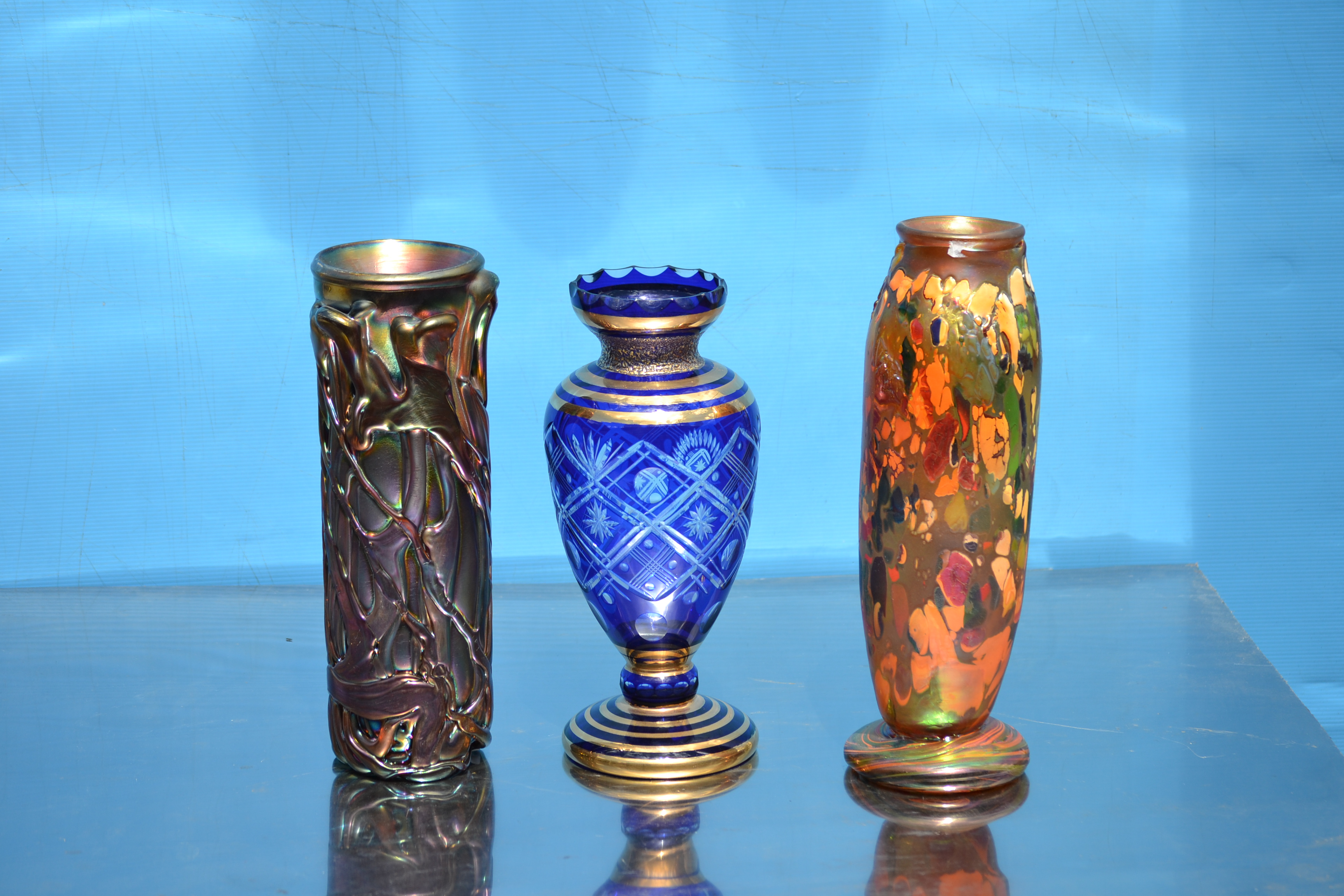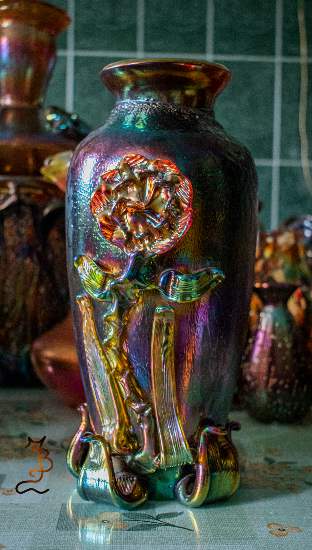 Irizált üvegek, üveg virágok