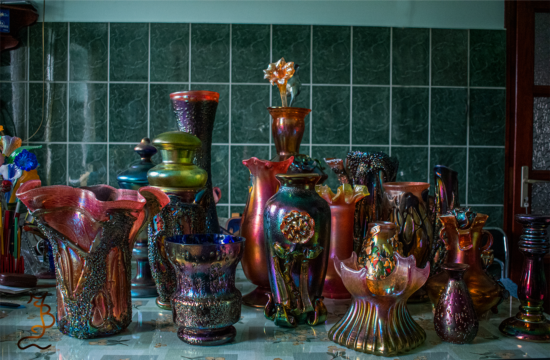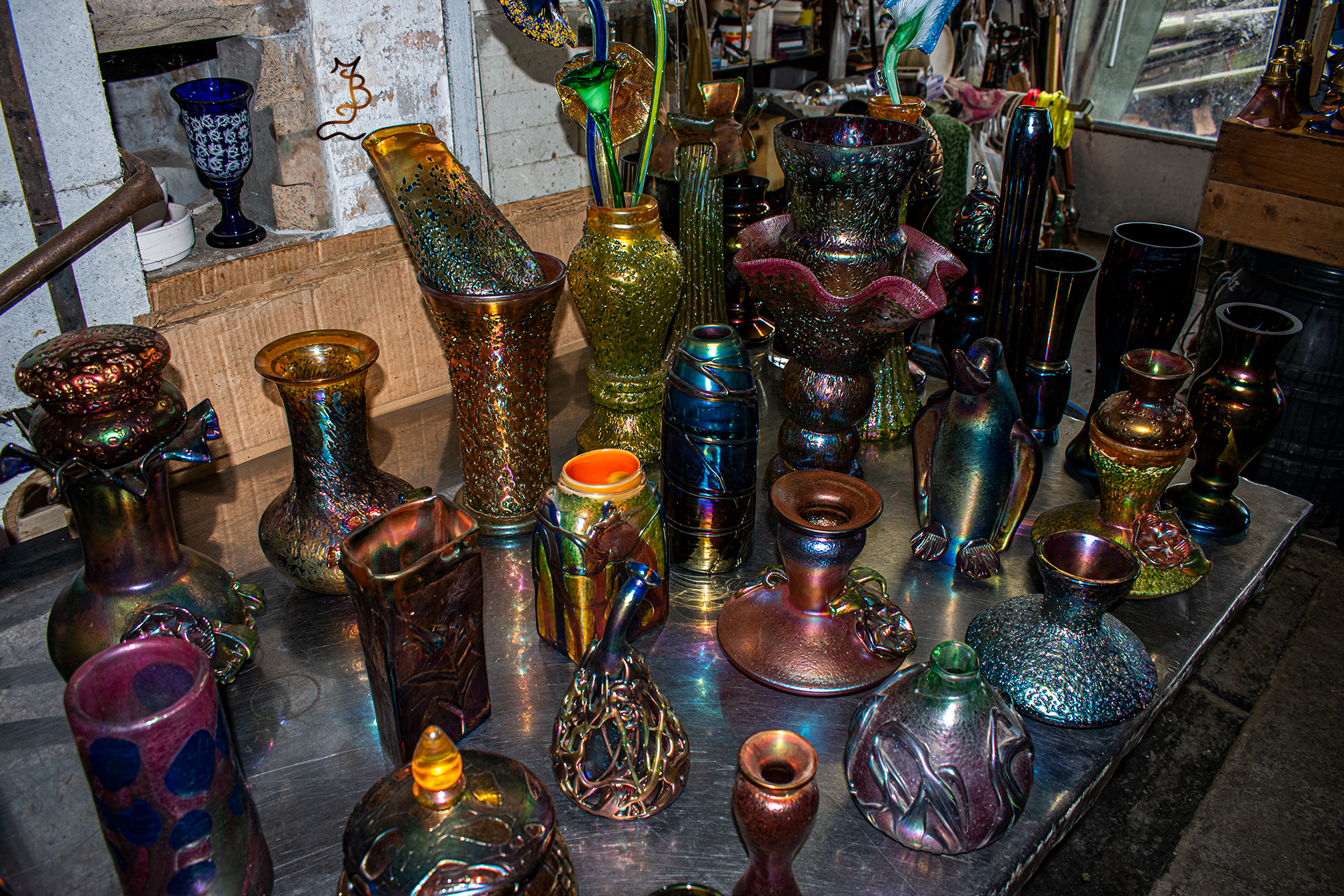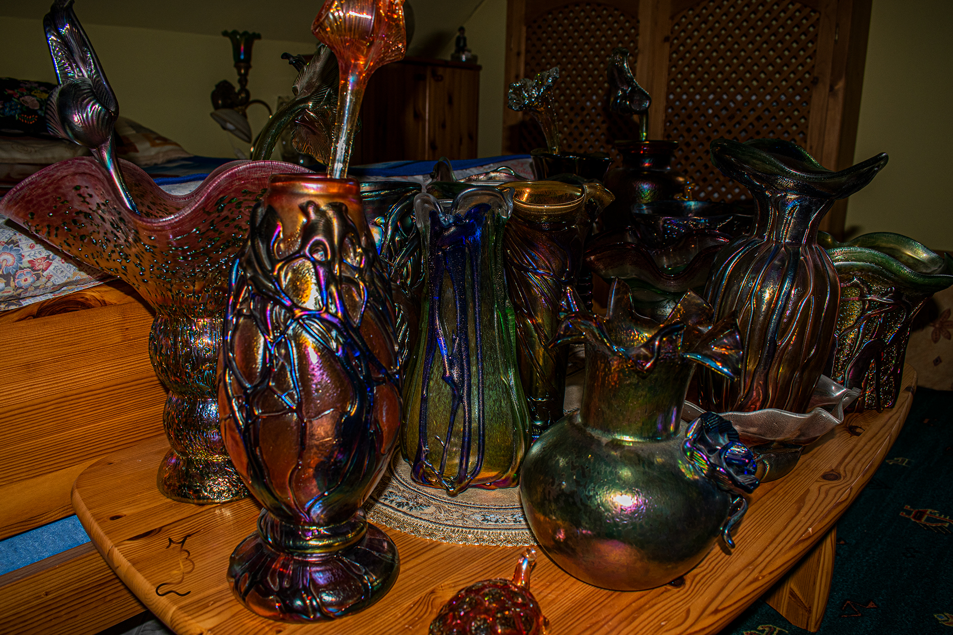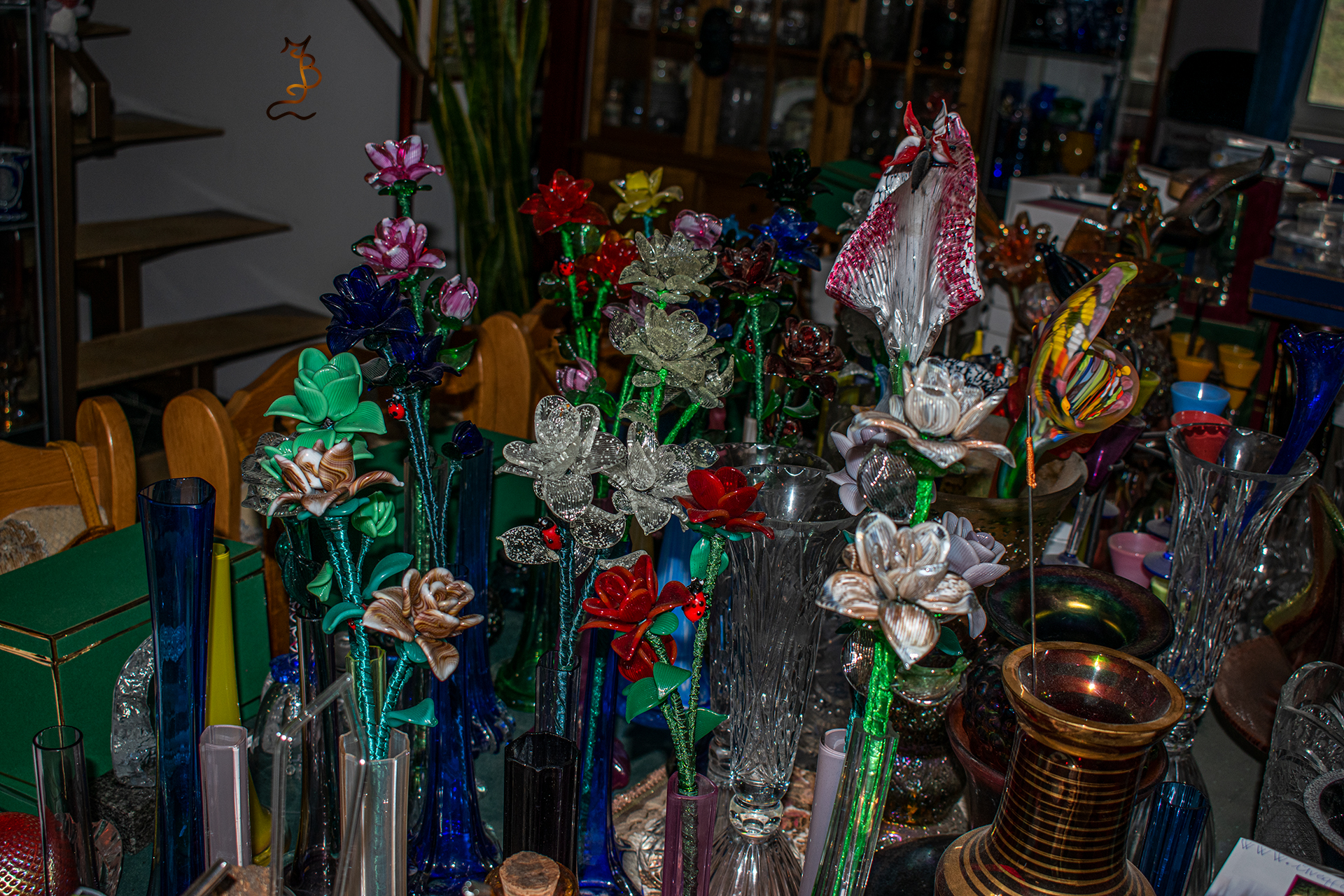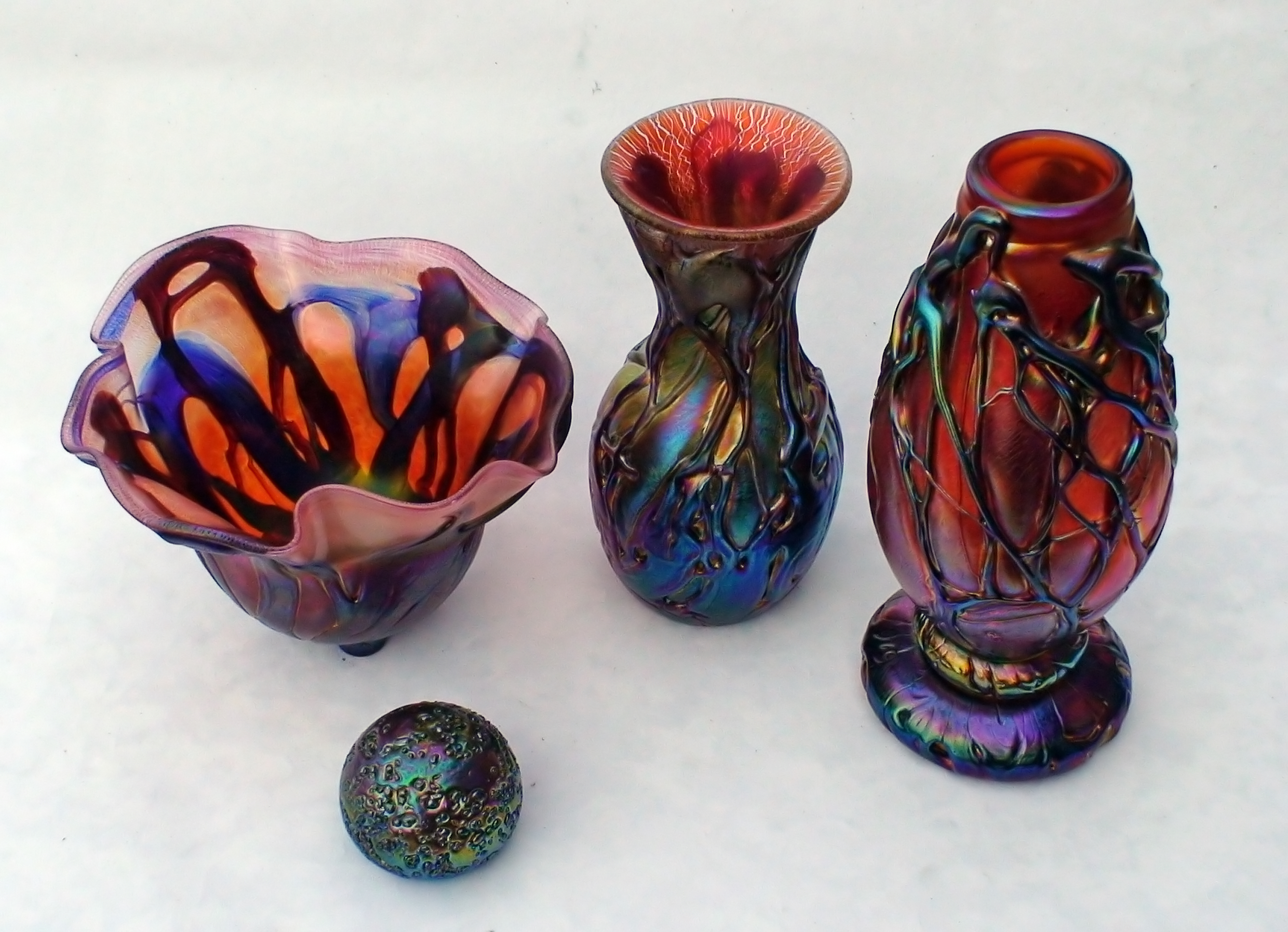 Irizált üvegek, üveg virágok