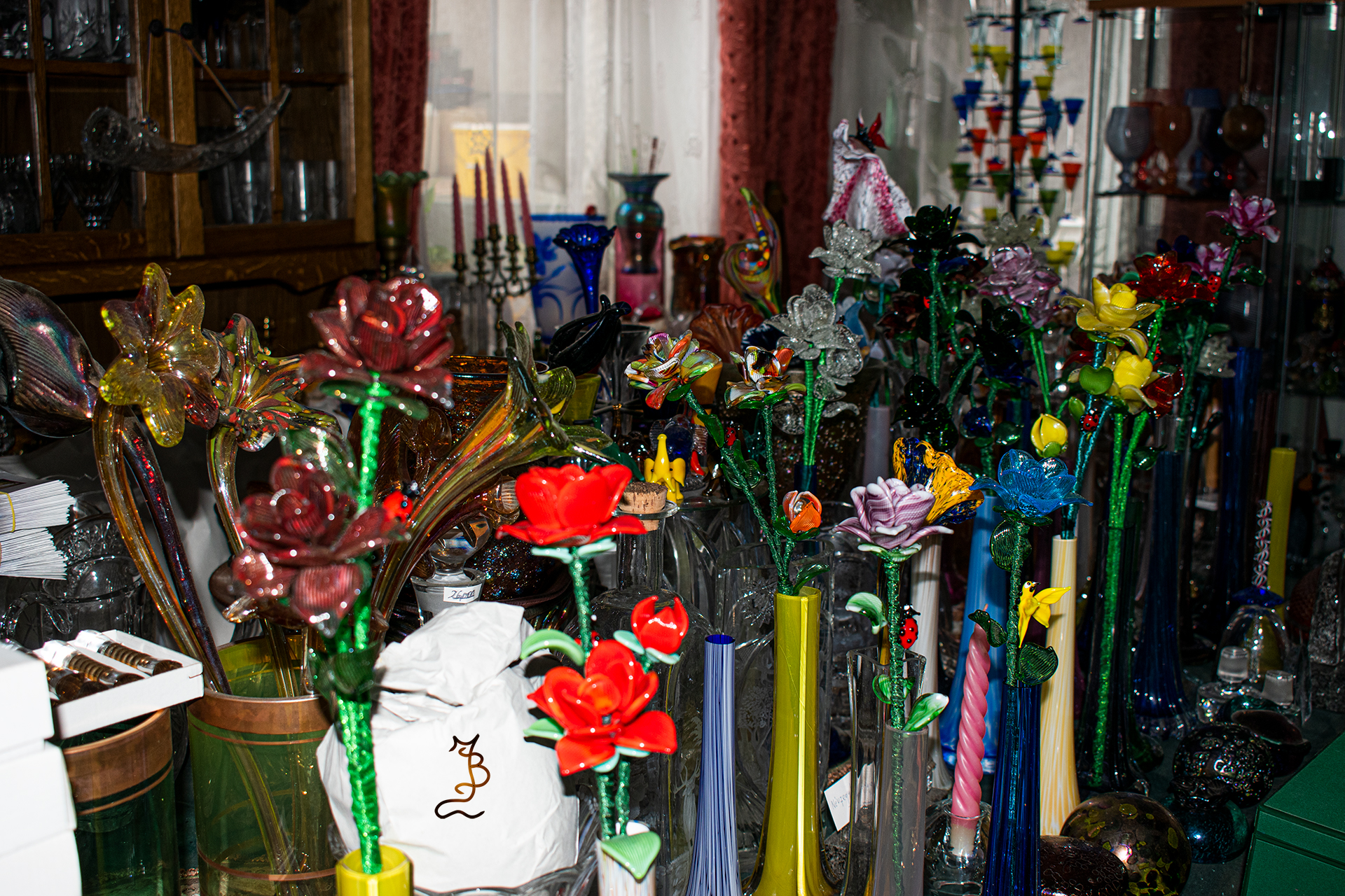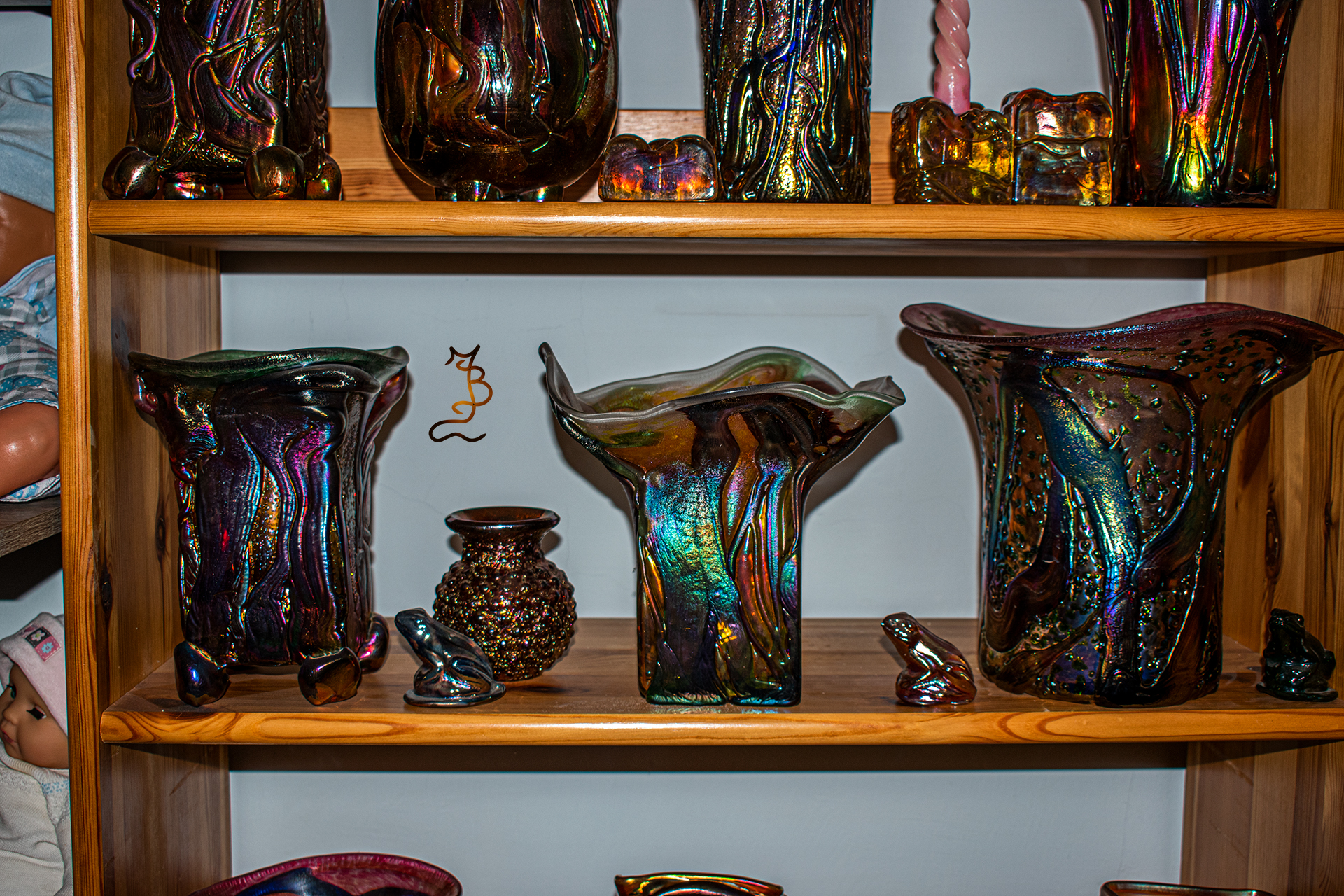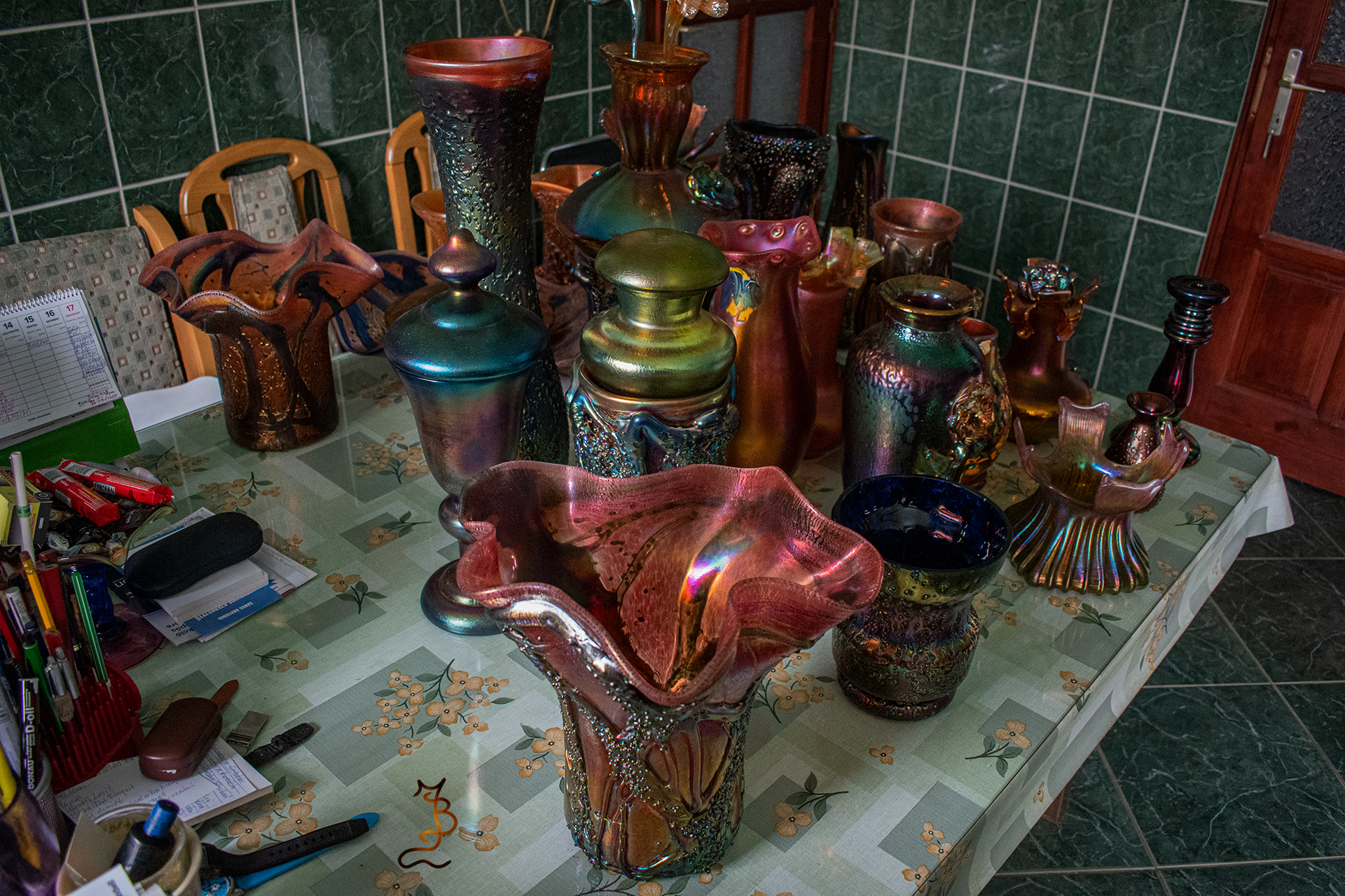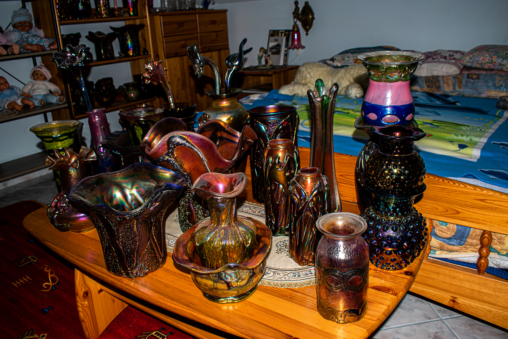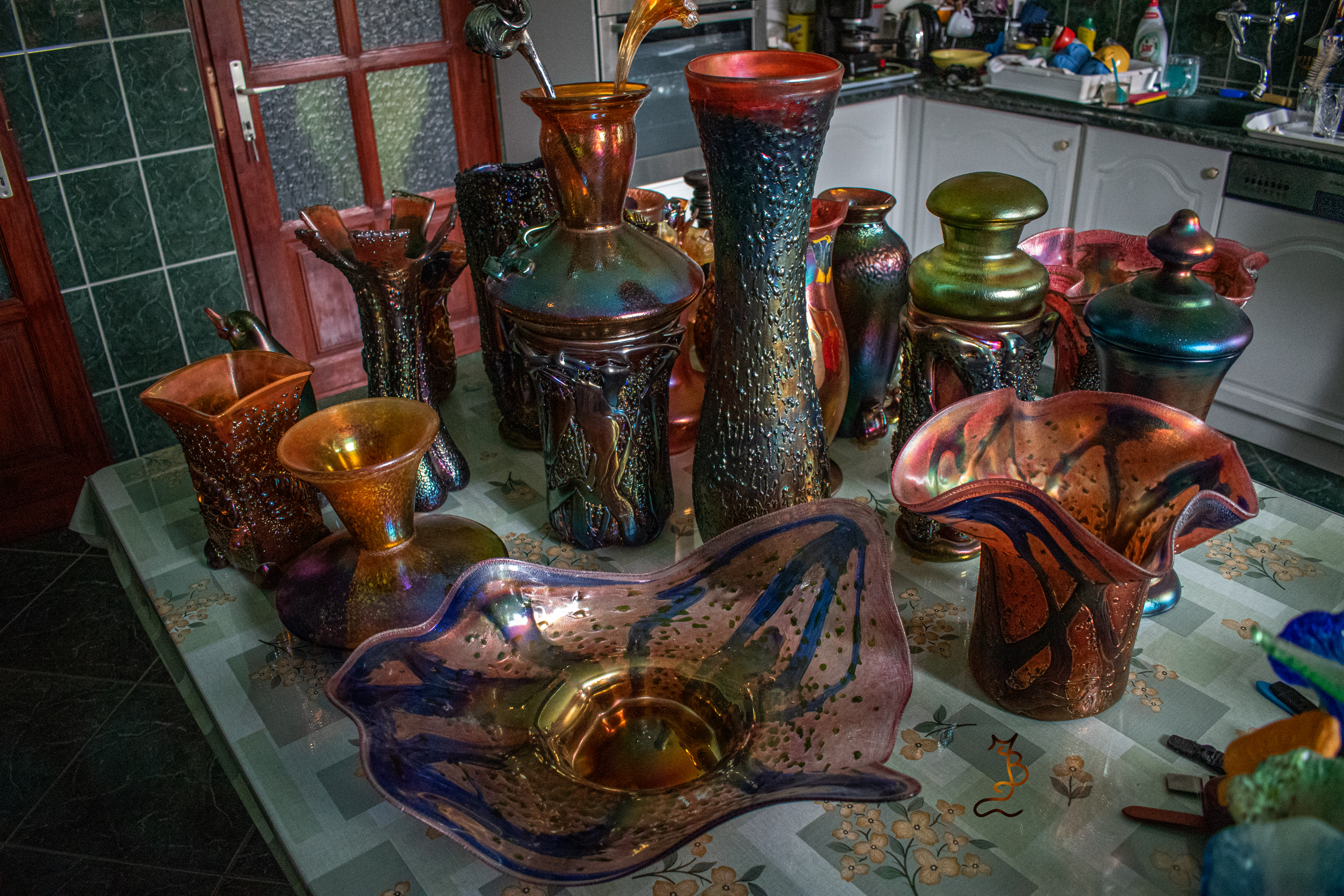 Irizált üvegek, üveg virágok