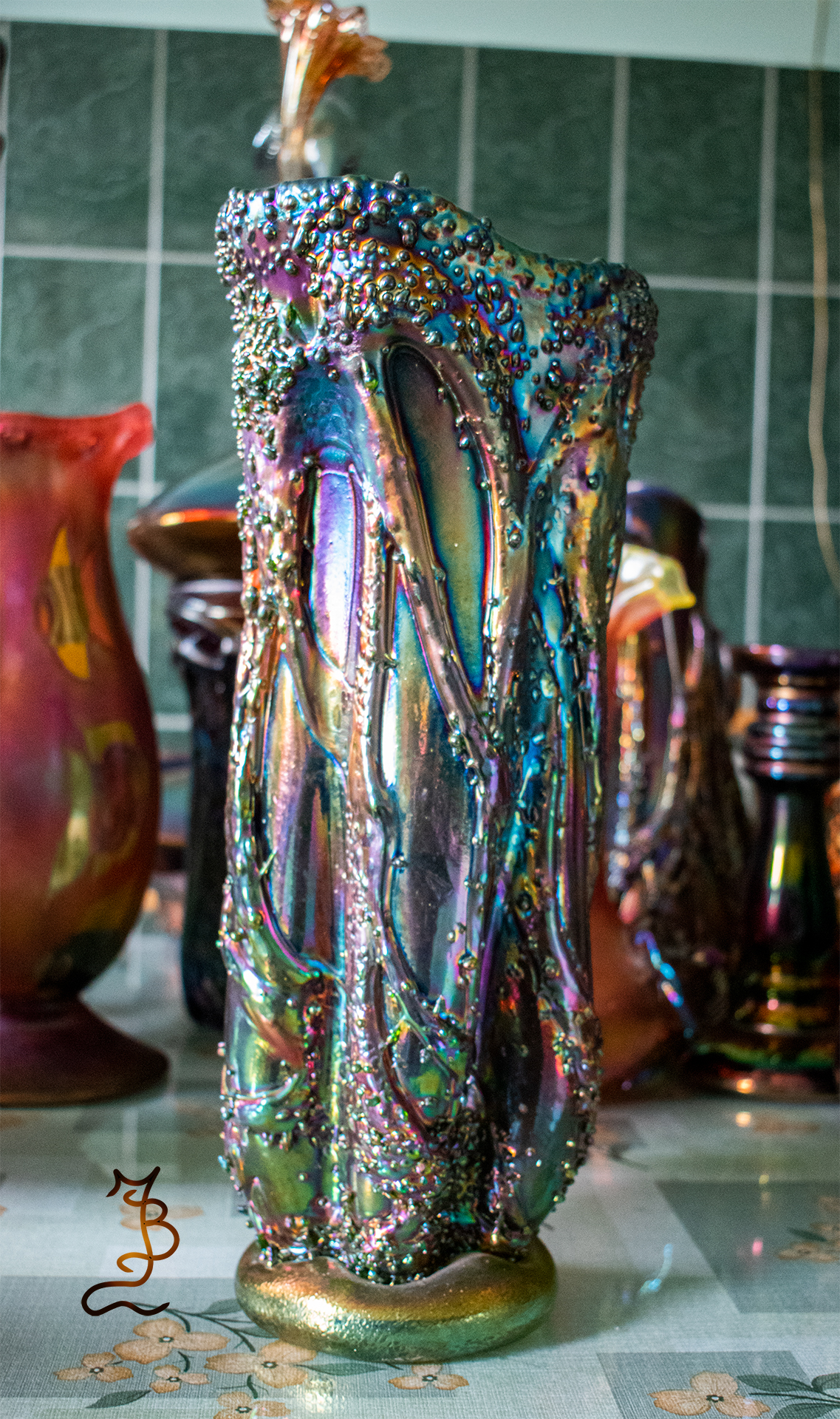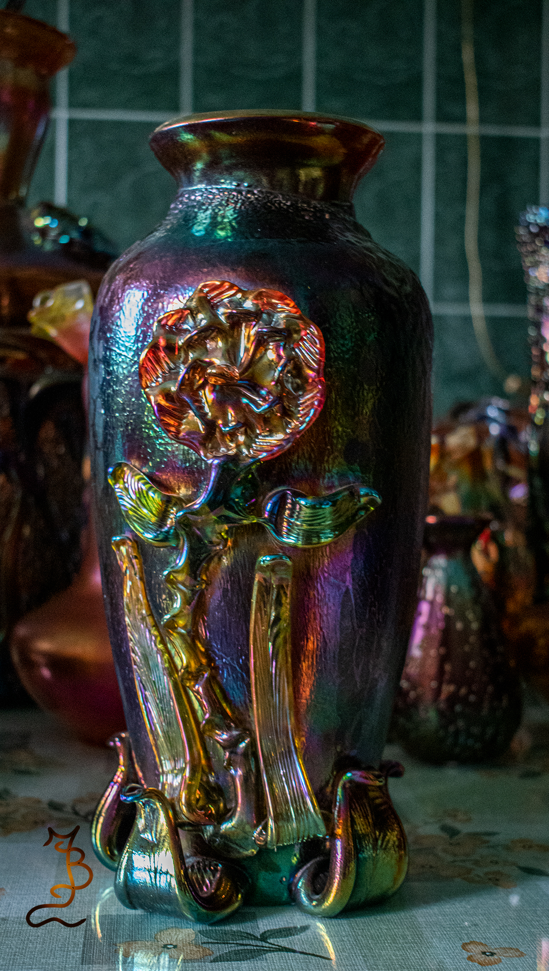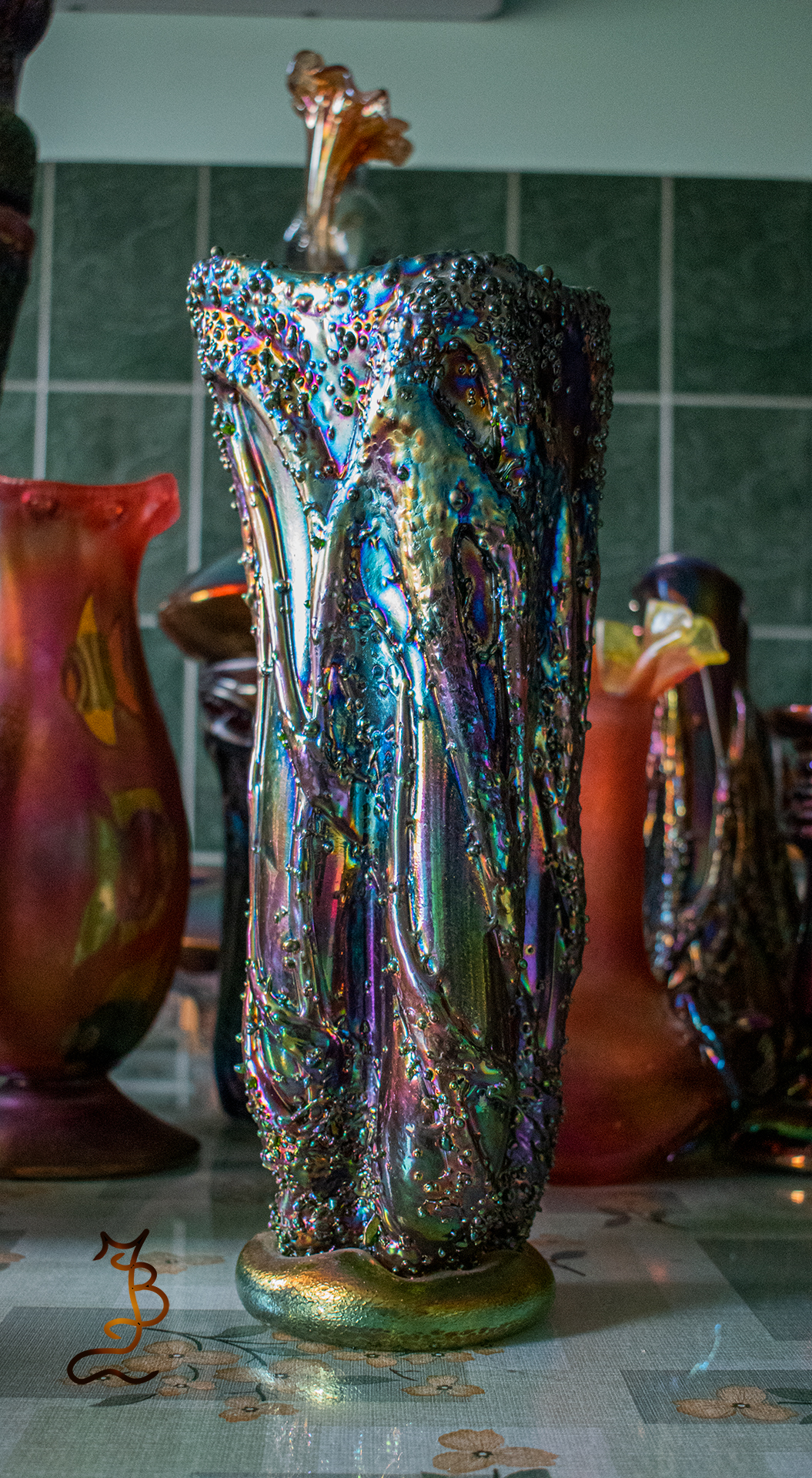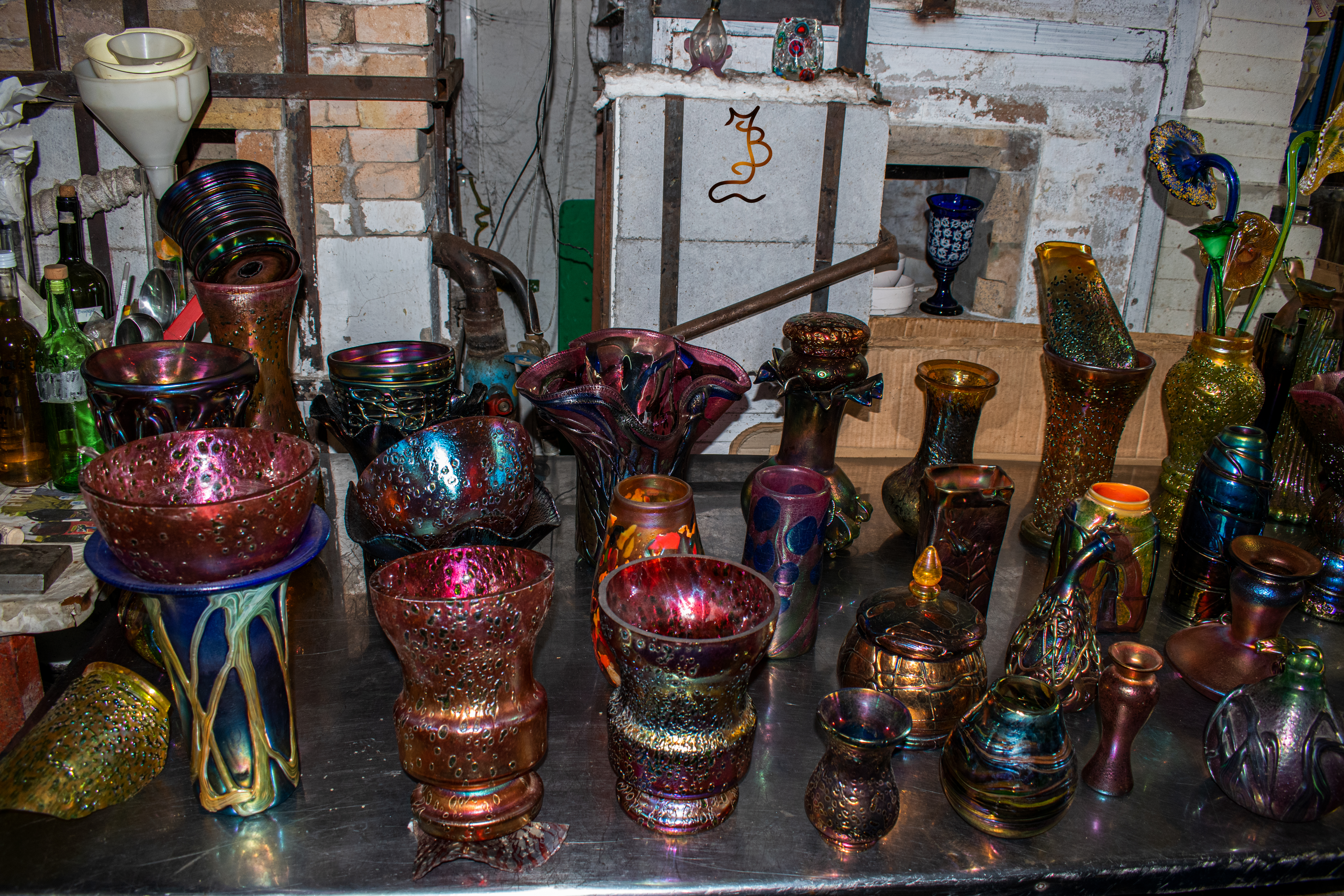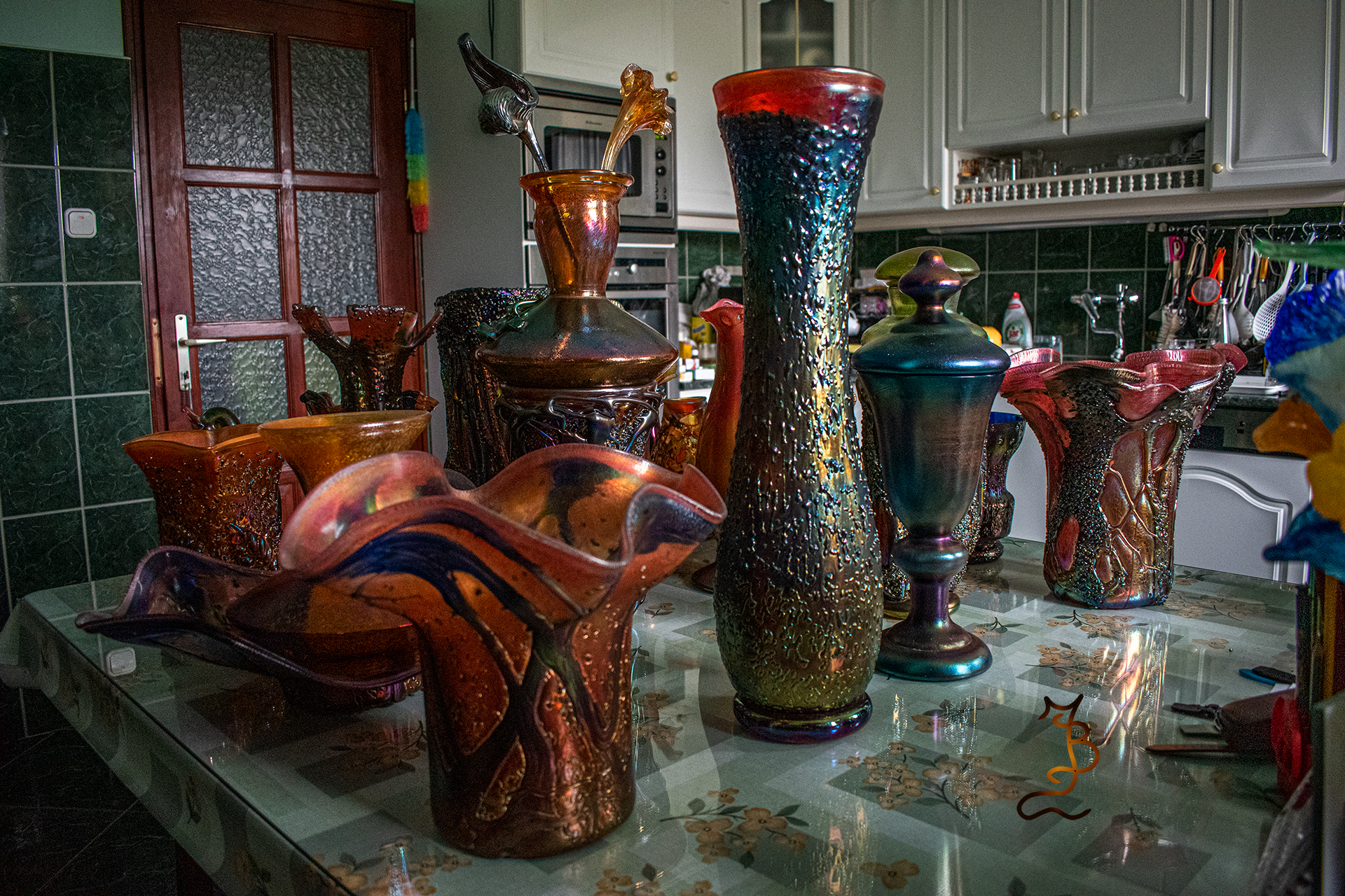 Irizált üvegek, üveg virágok