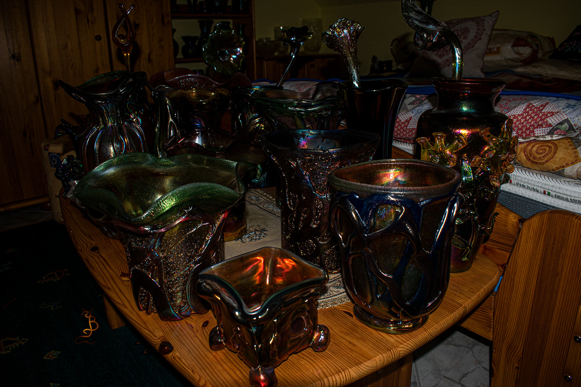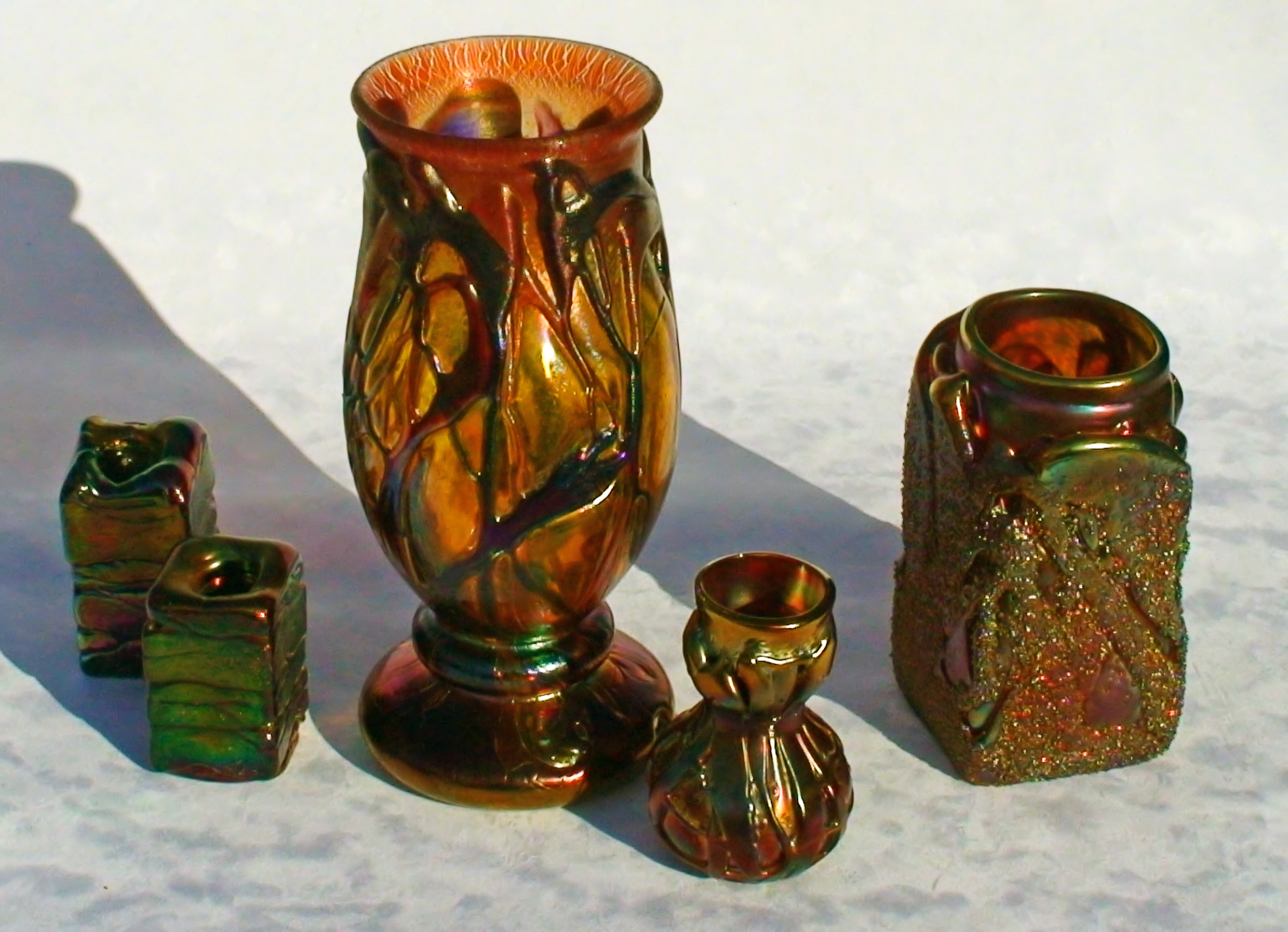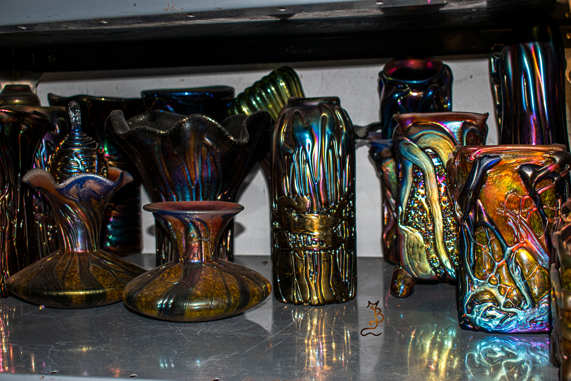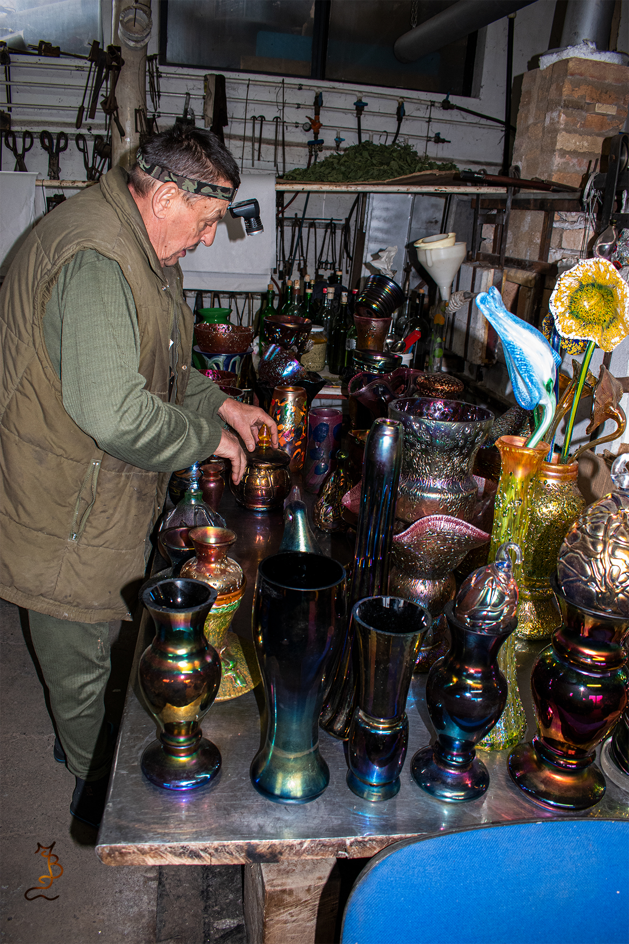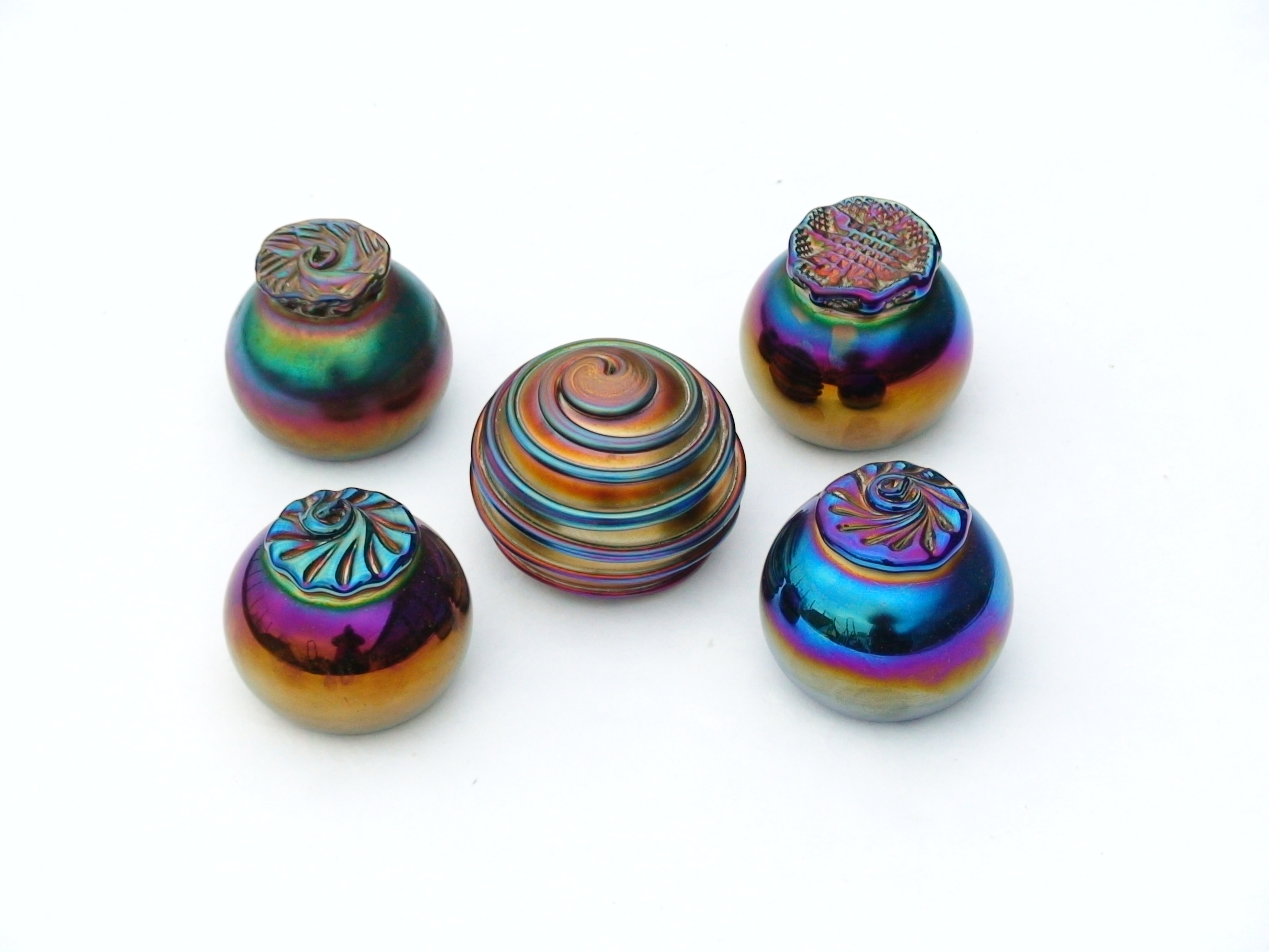 Irizált üvegek, üveg virágok