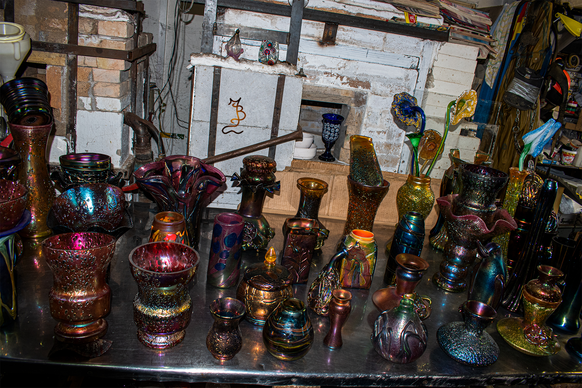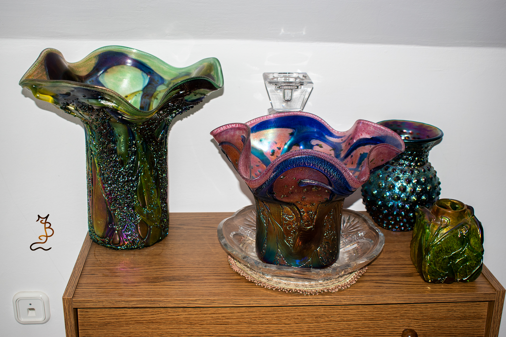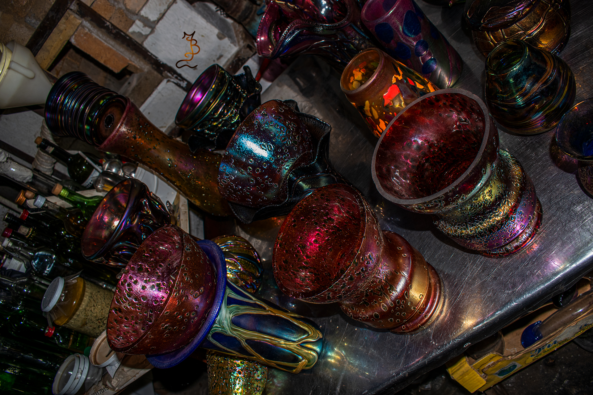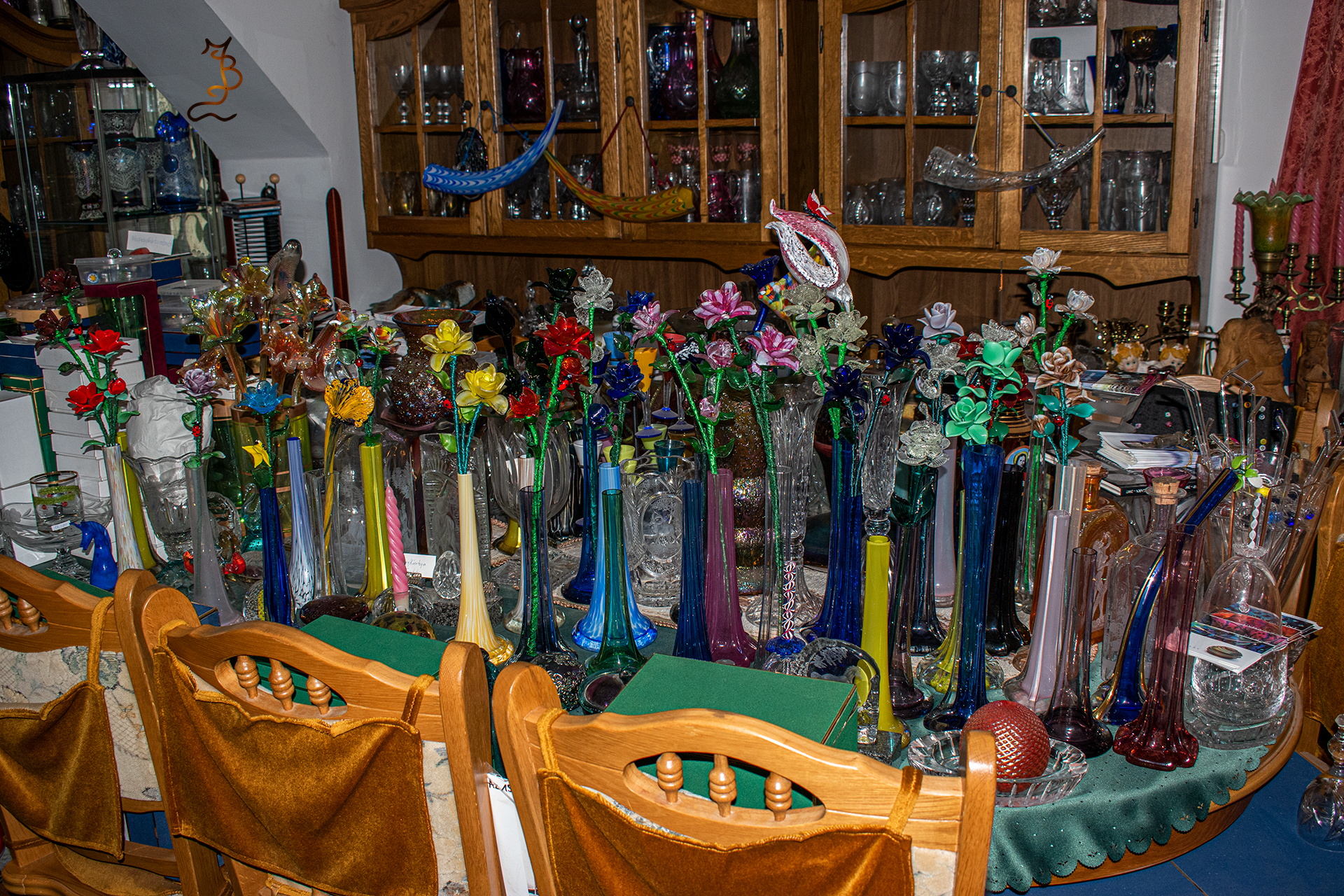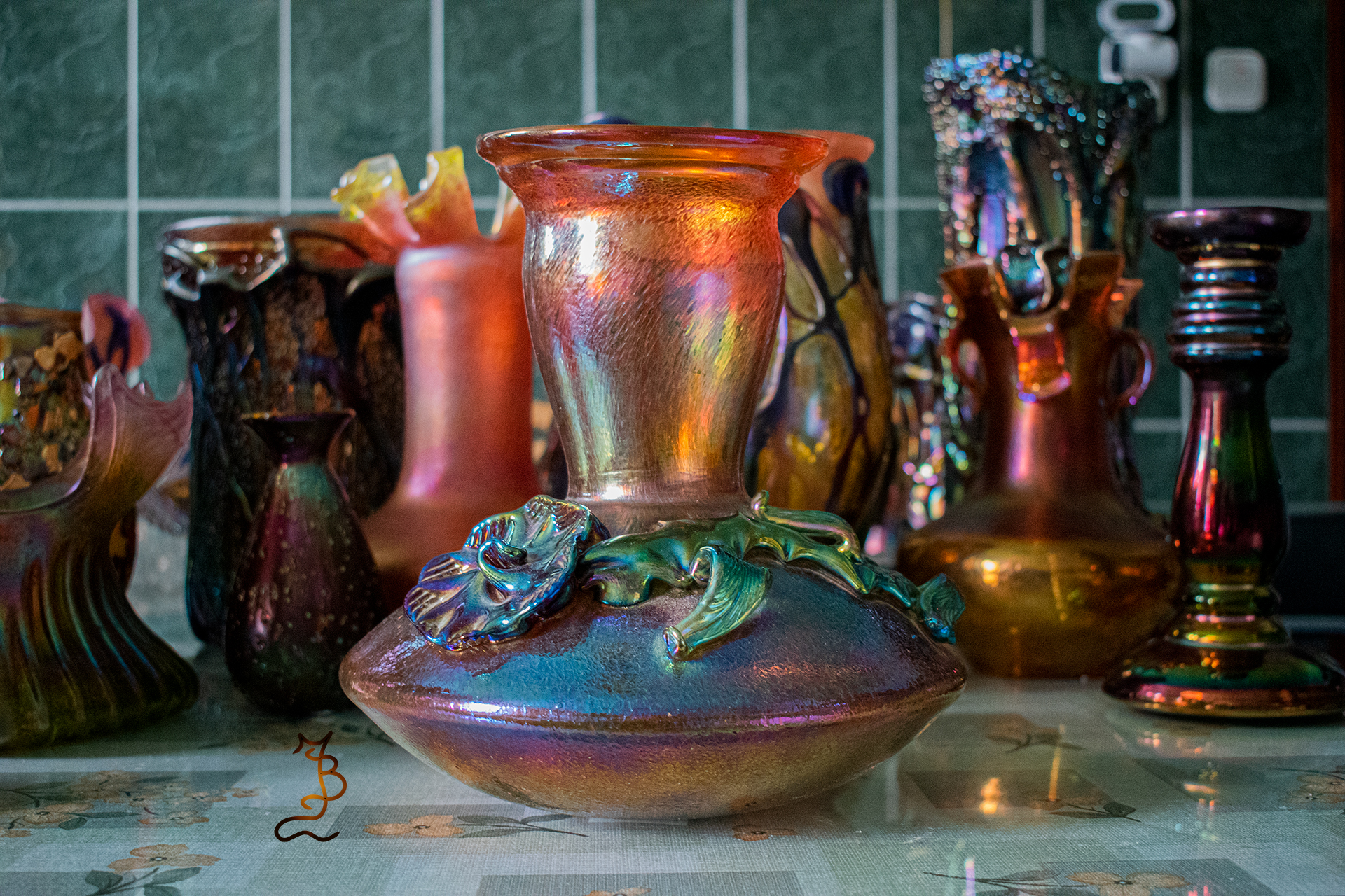 Irizált üvegek, üveg virágok