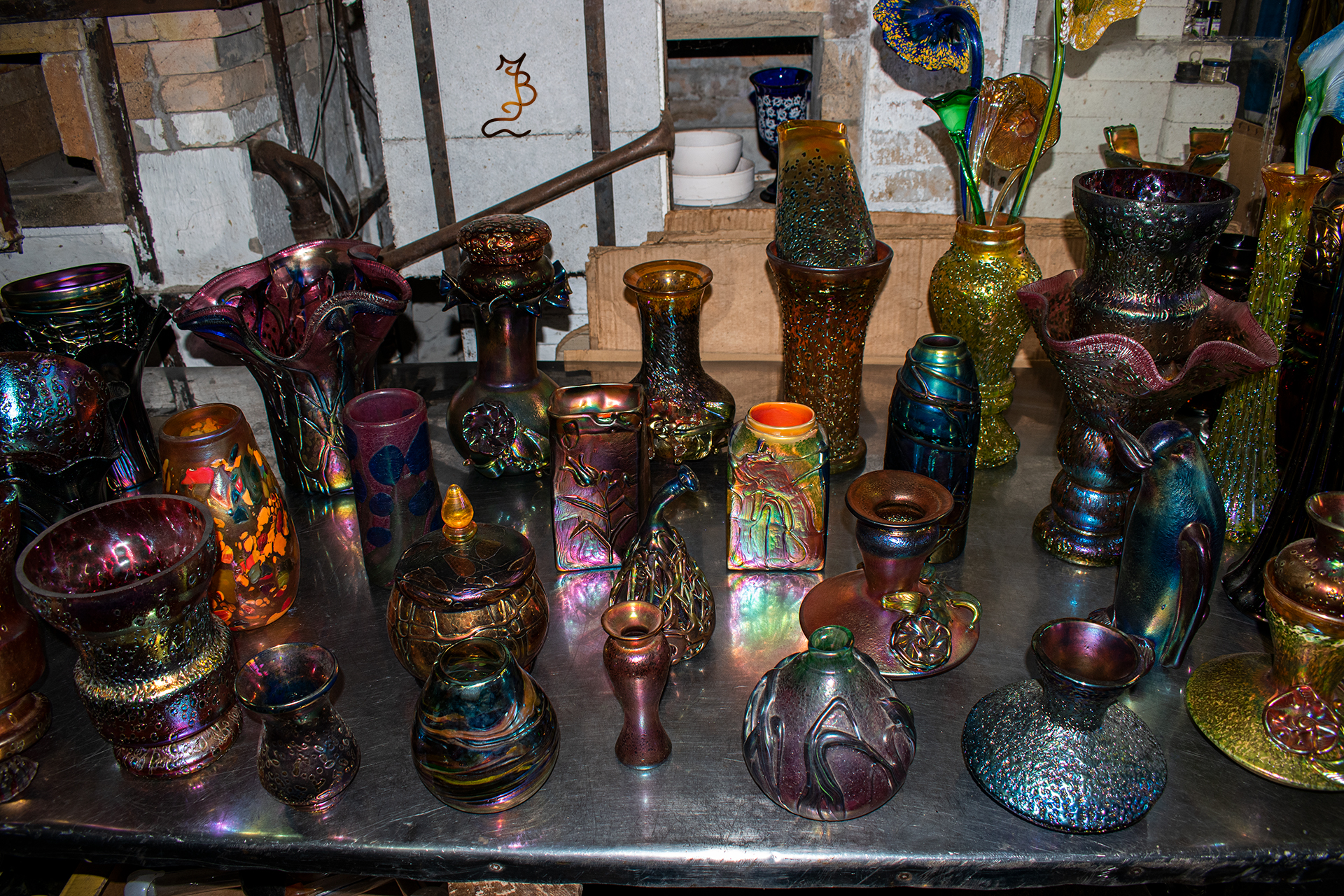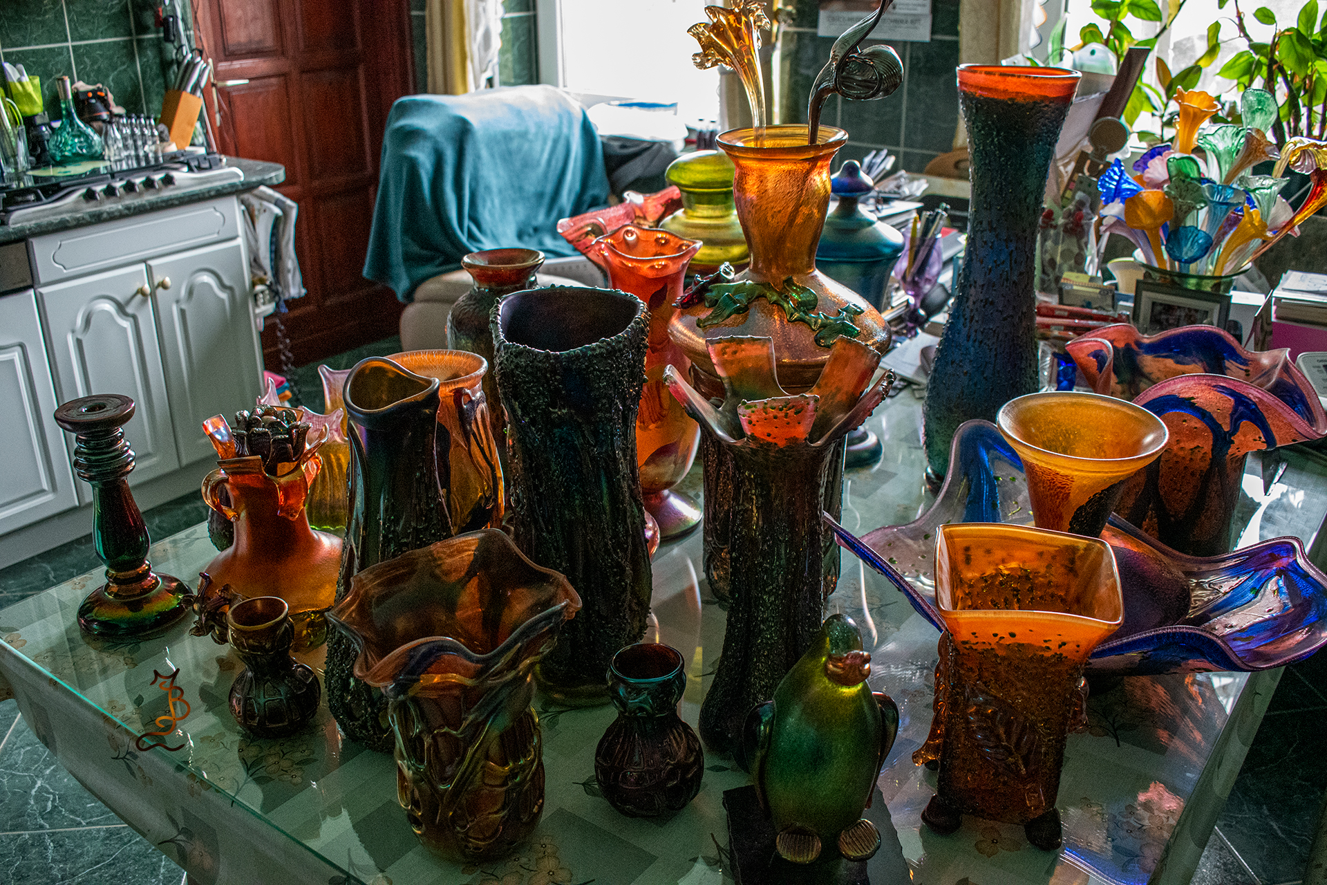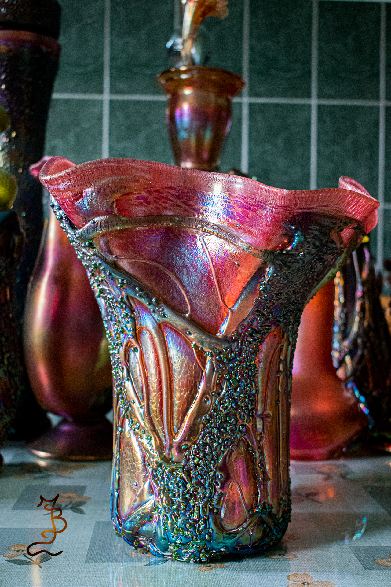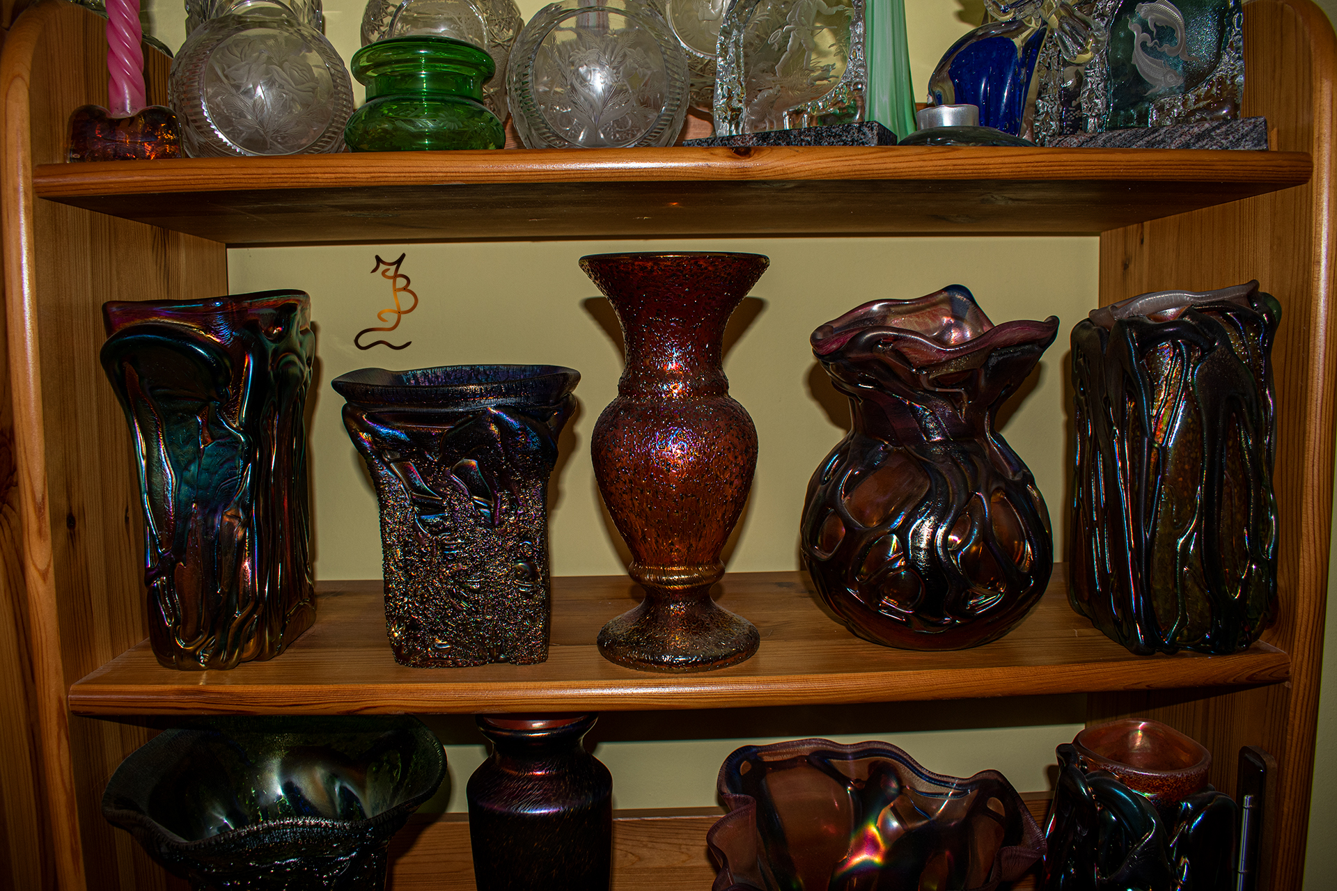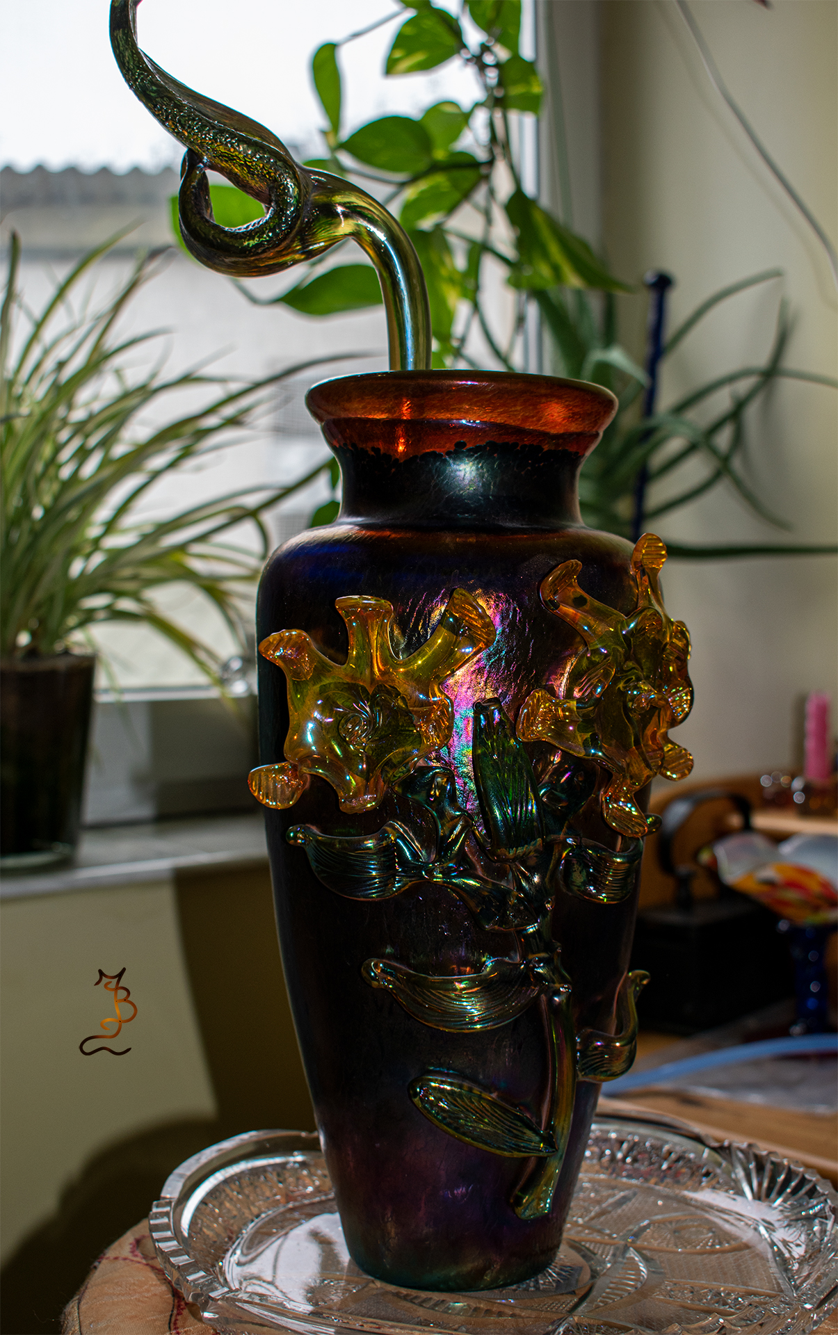 Irizált üvegek, üveg virágok