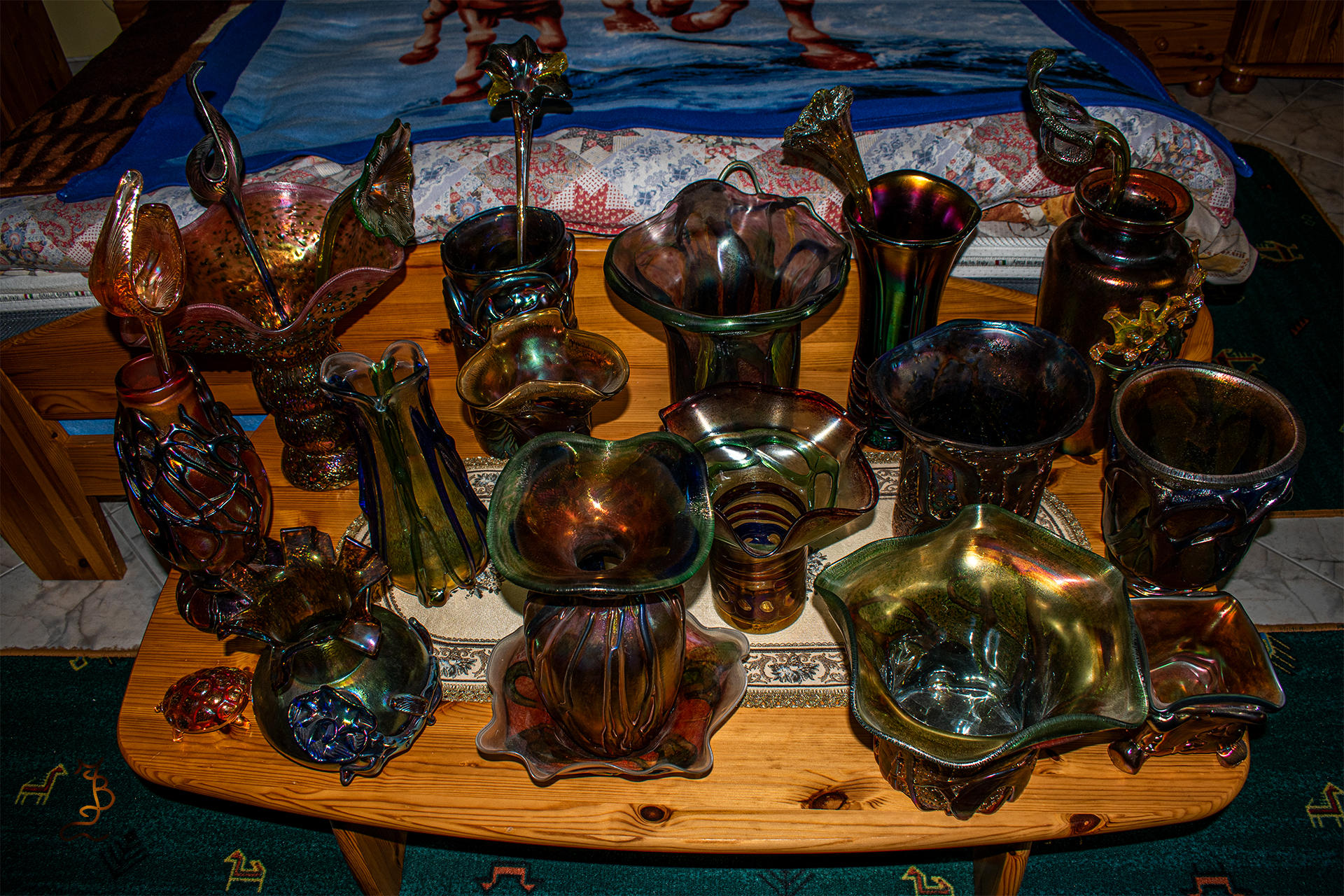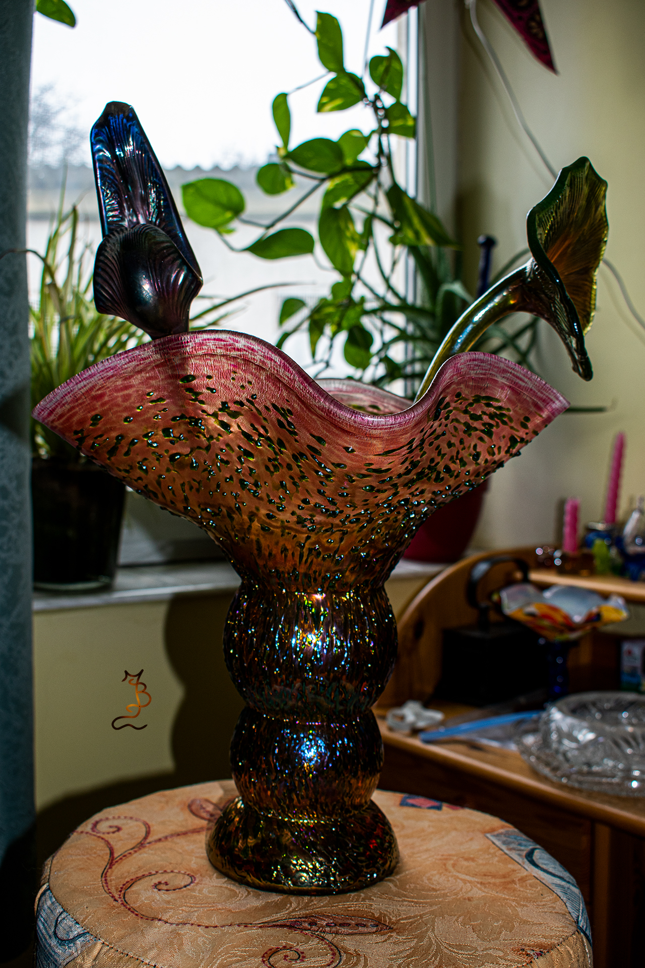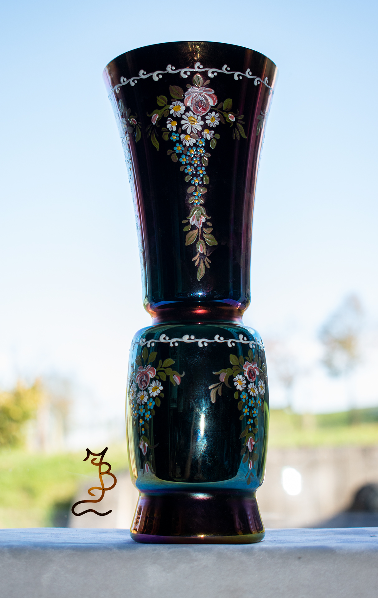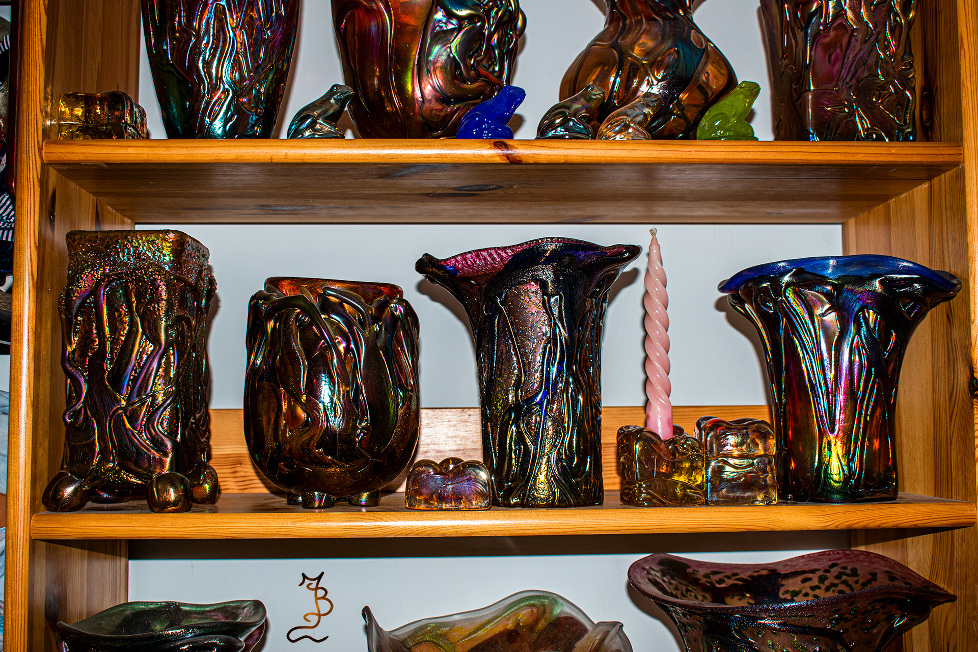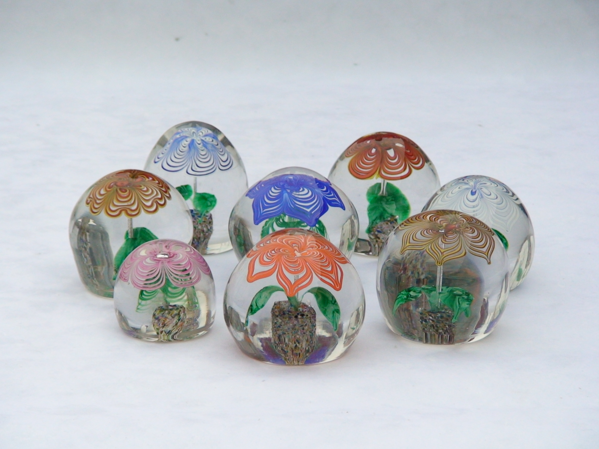 Irizált üvegek, üveg virágok