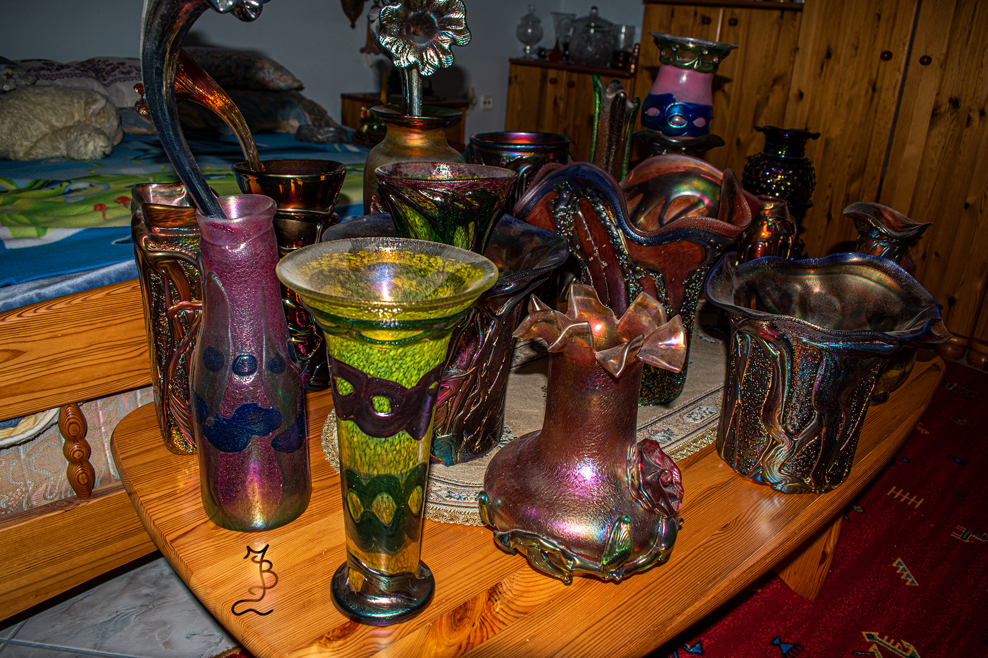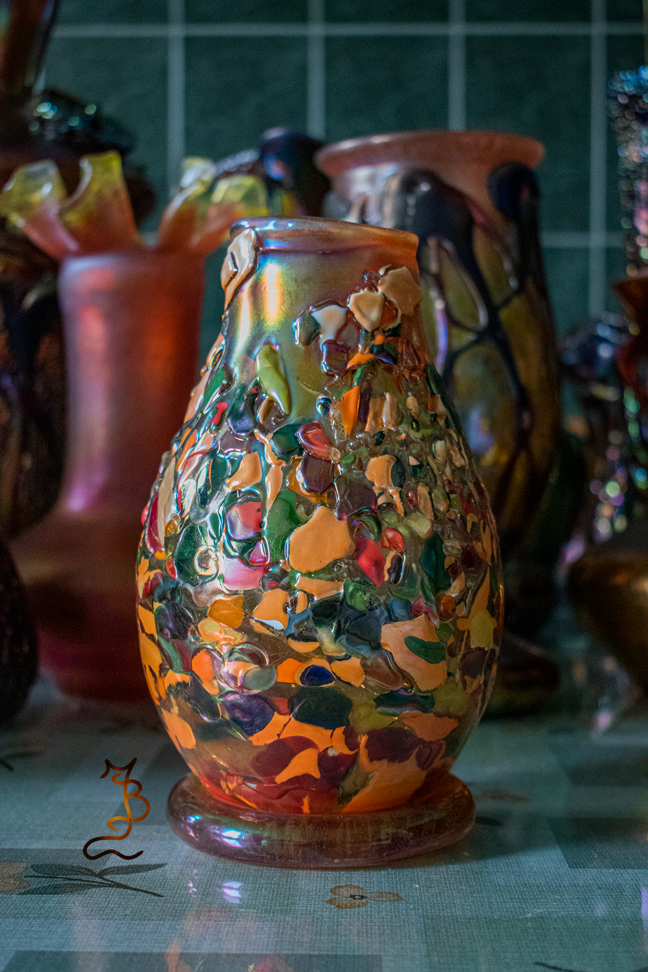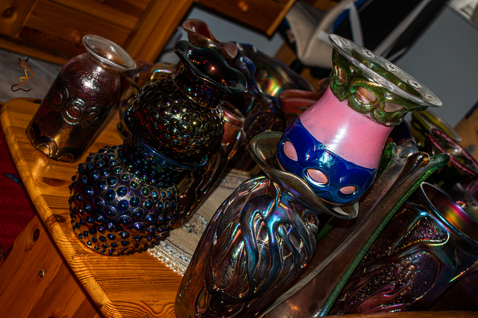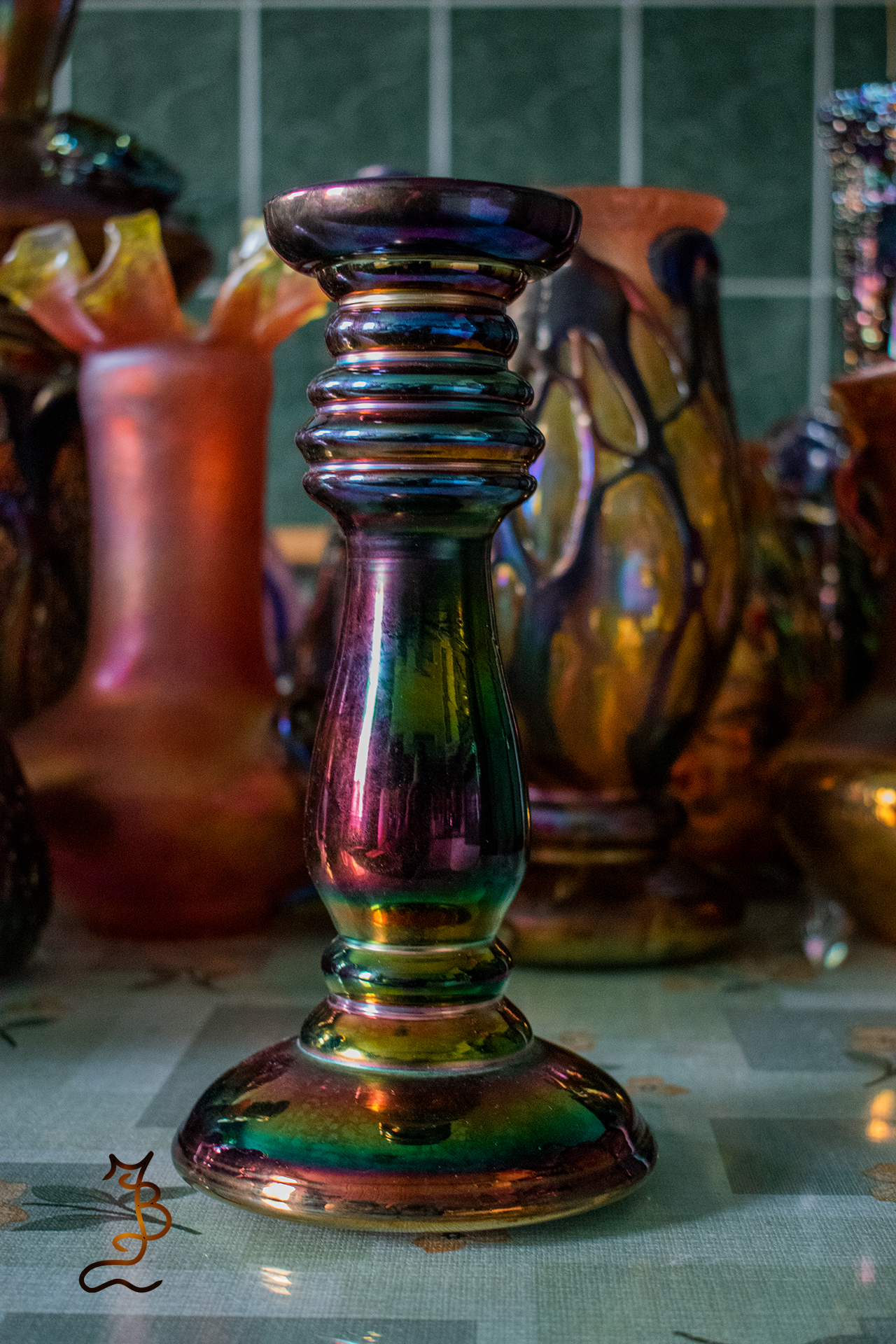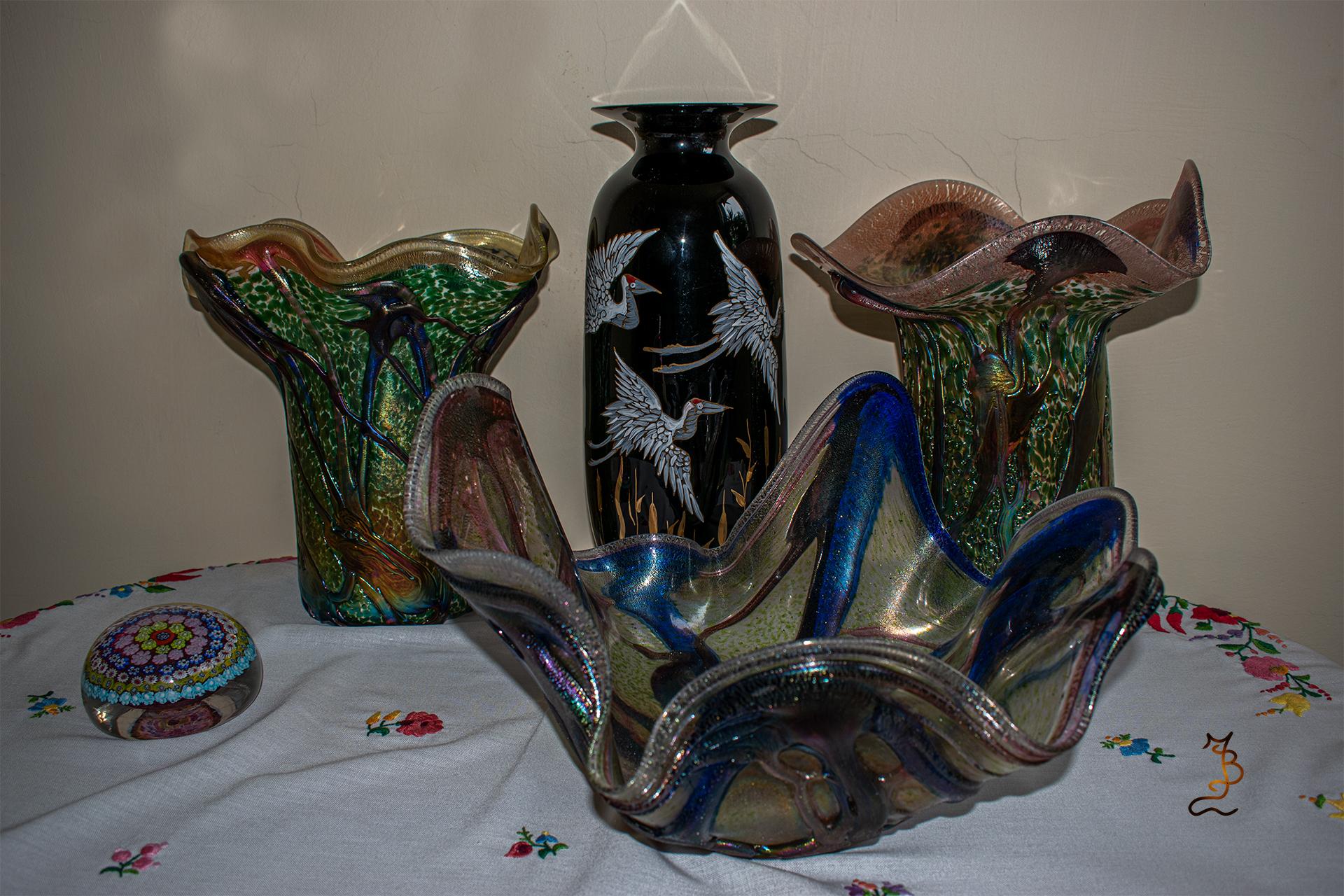 Irizált üvegek, üveg virágok