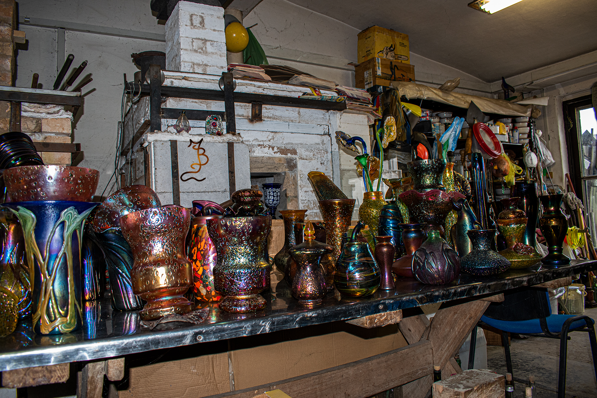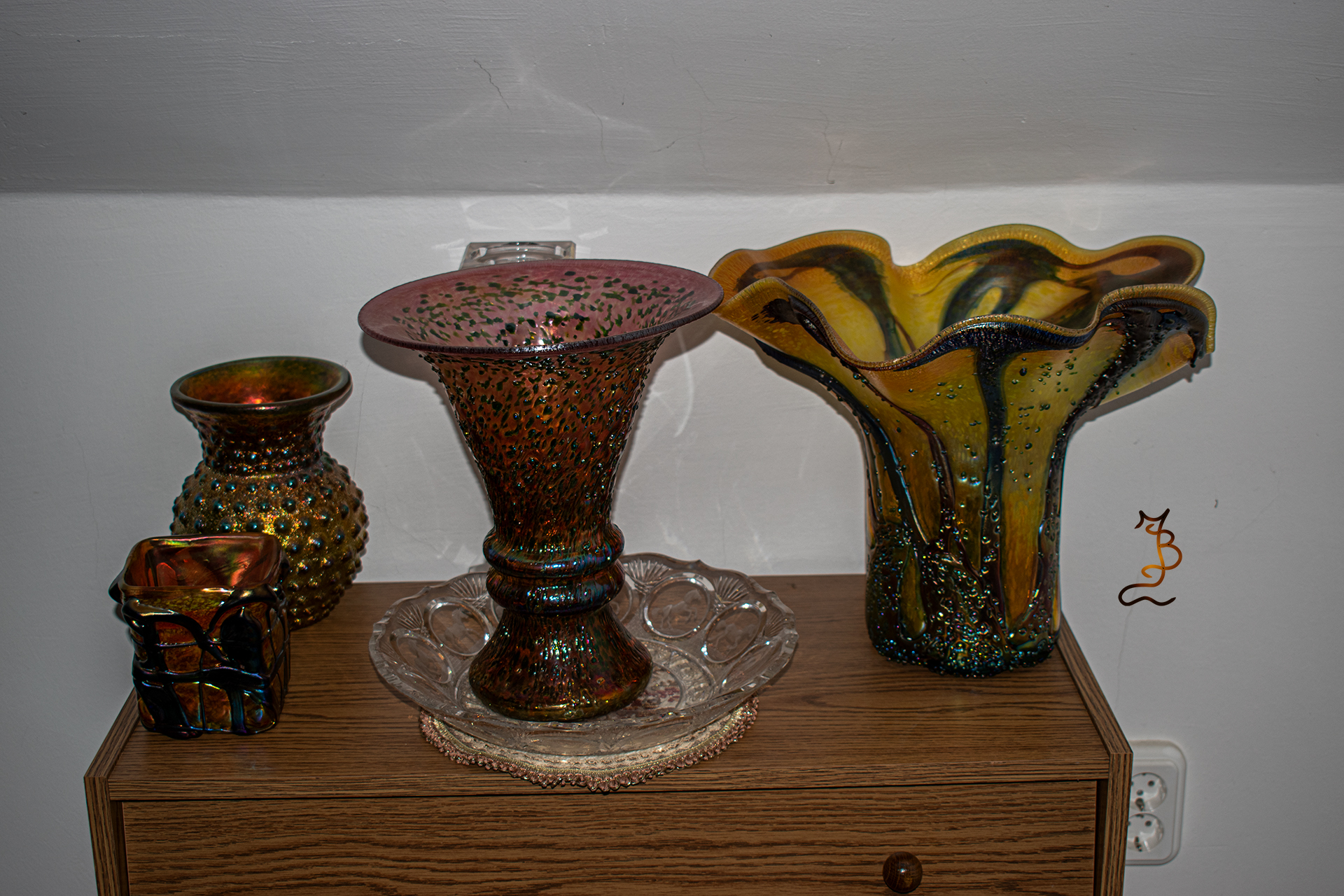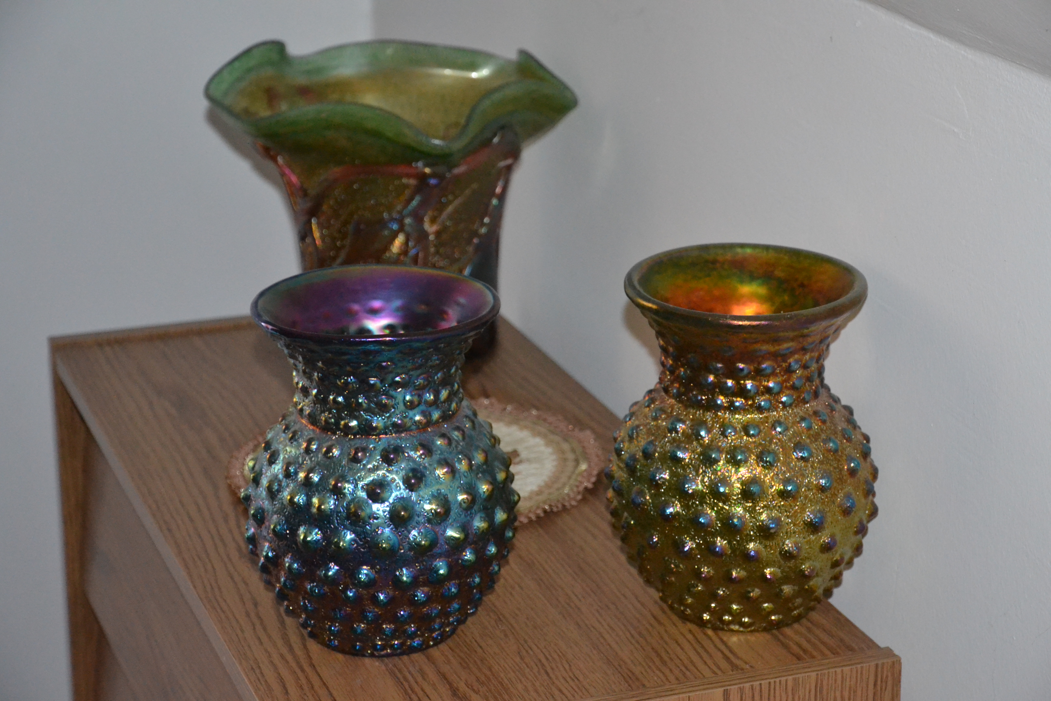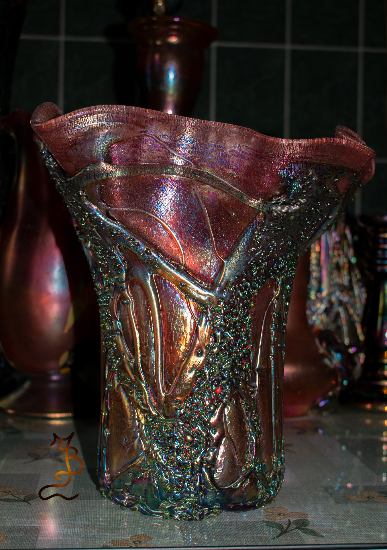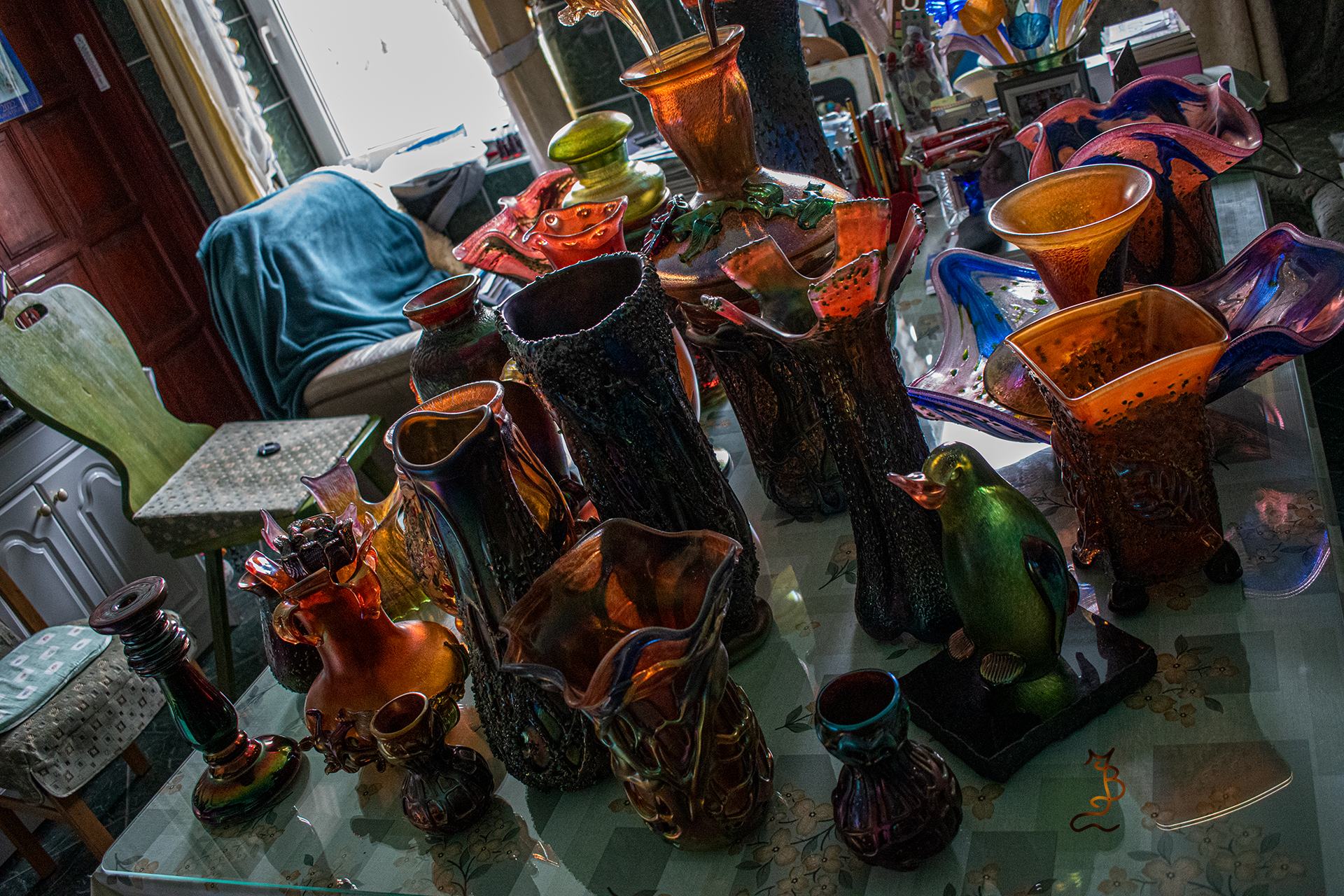 Irizált üvegek, üveg virágok
