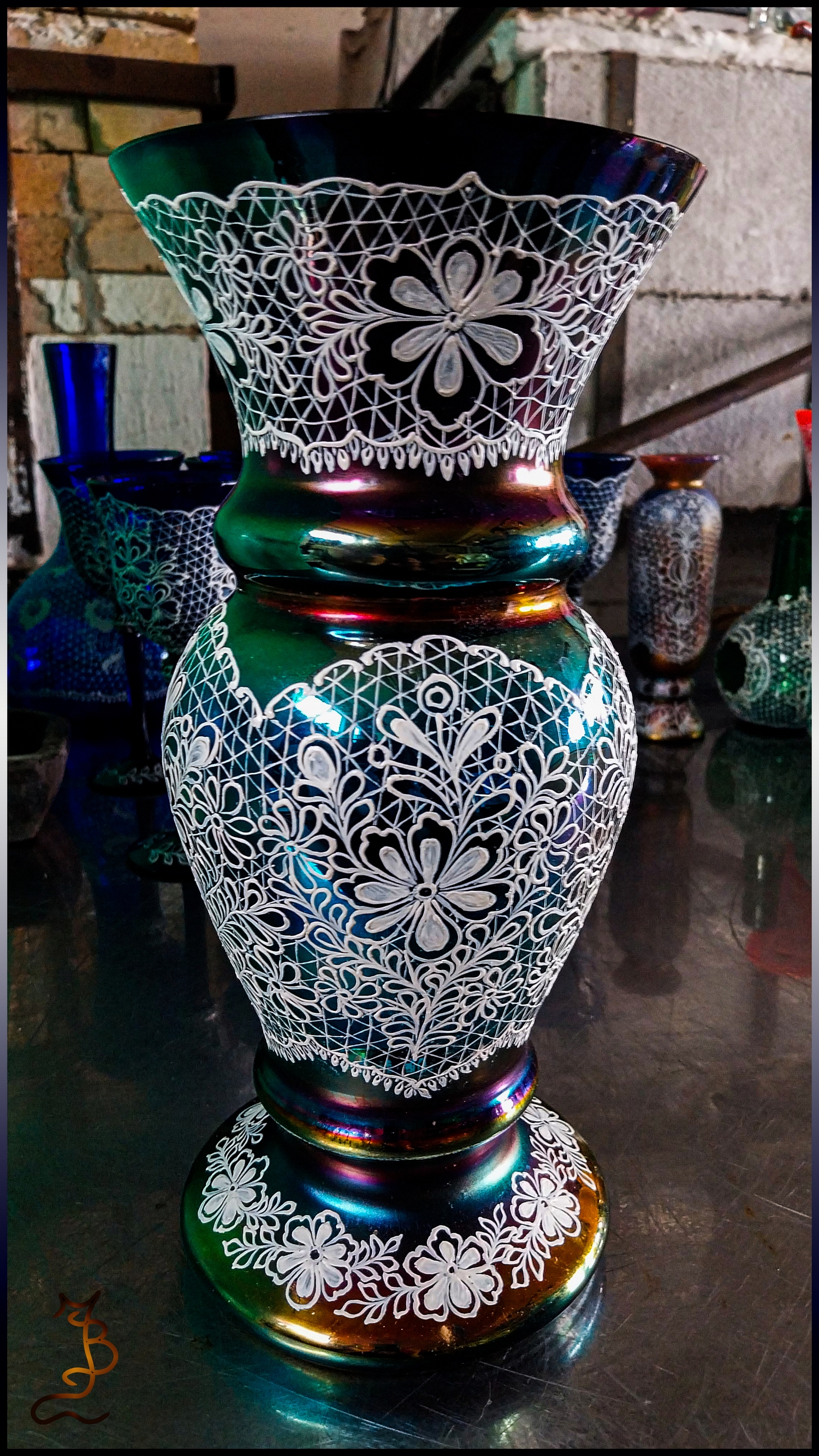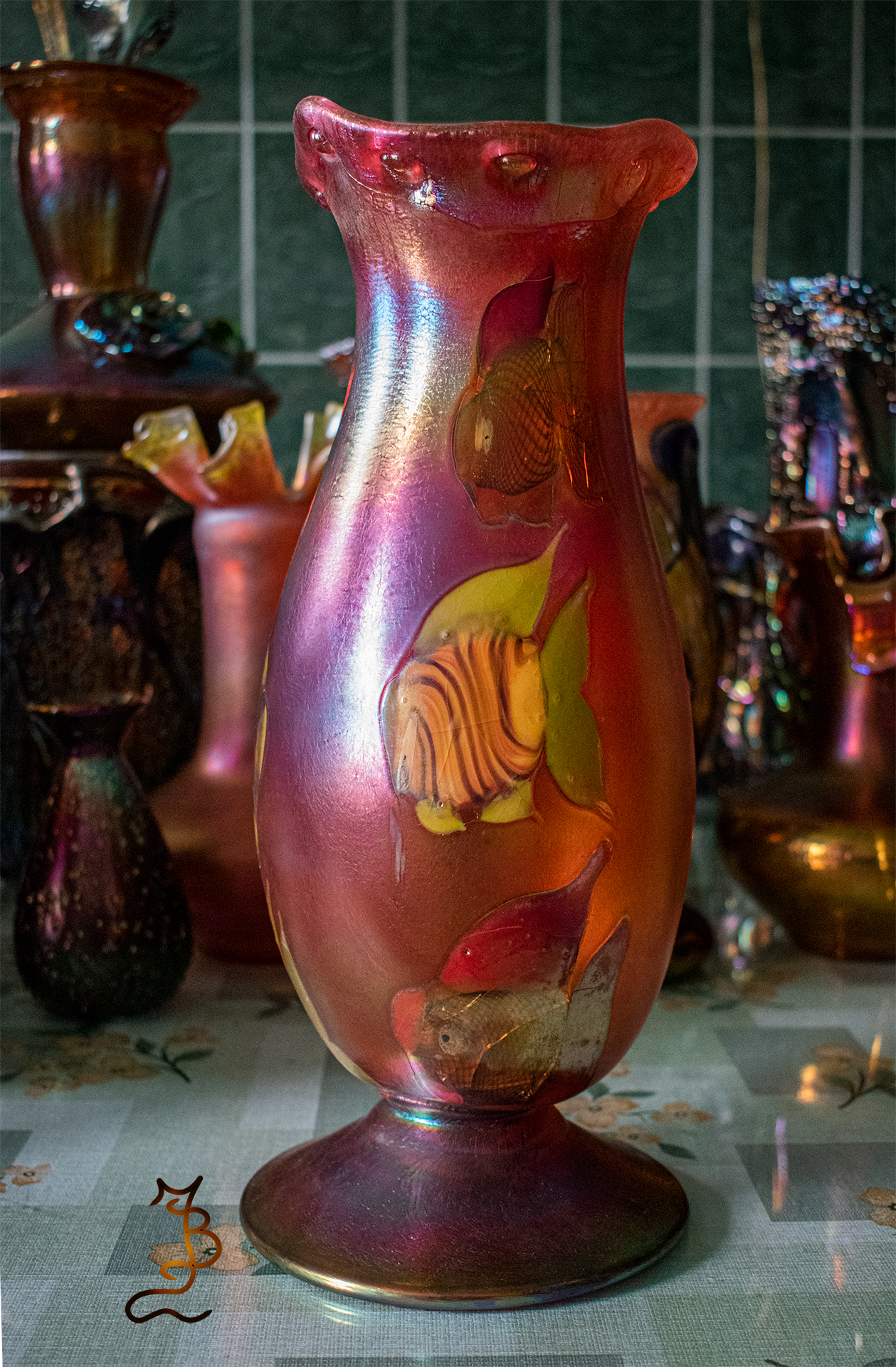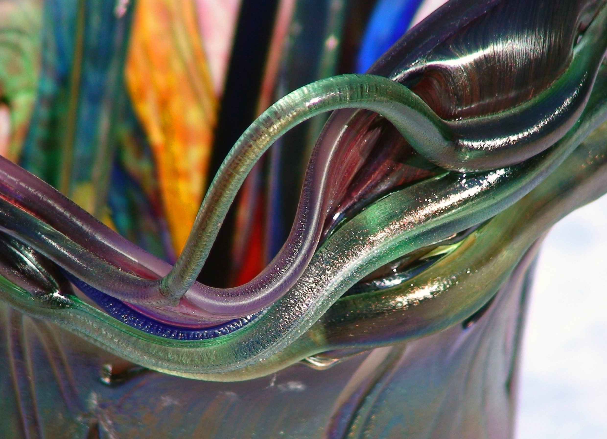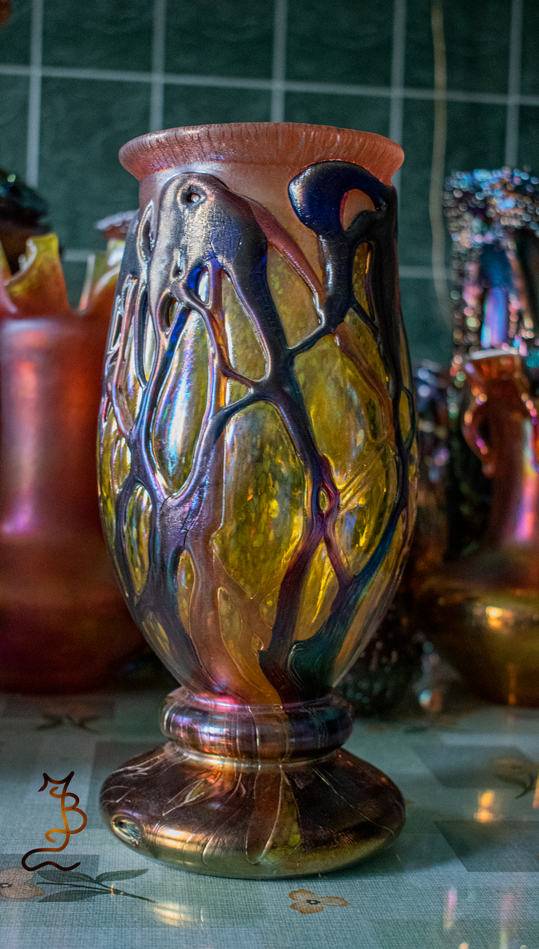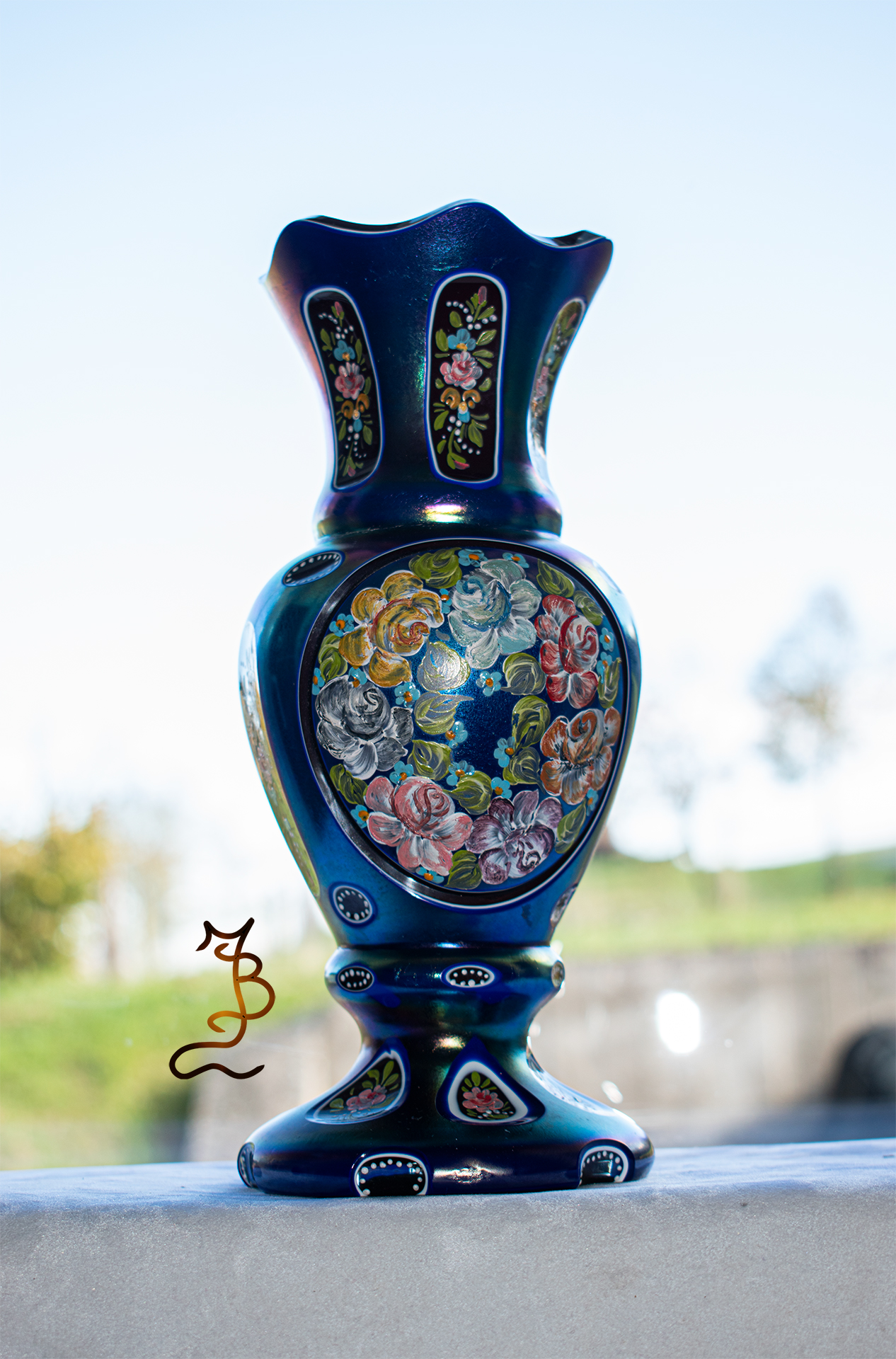 Irizált üvegek, üveg virágok