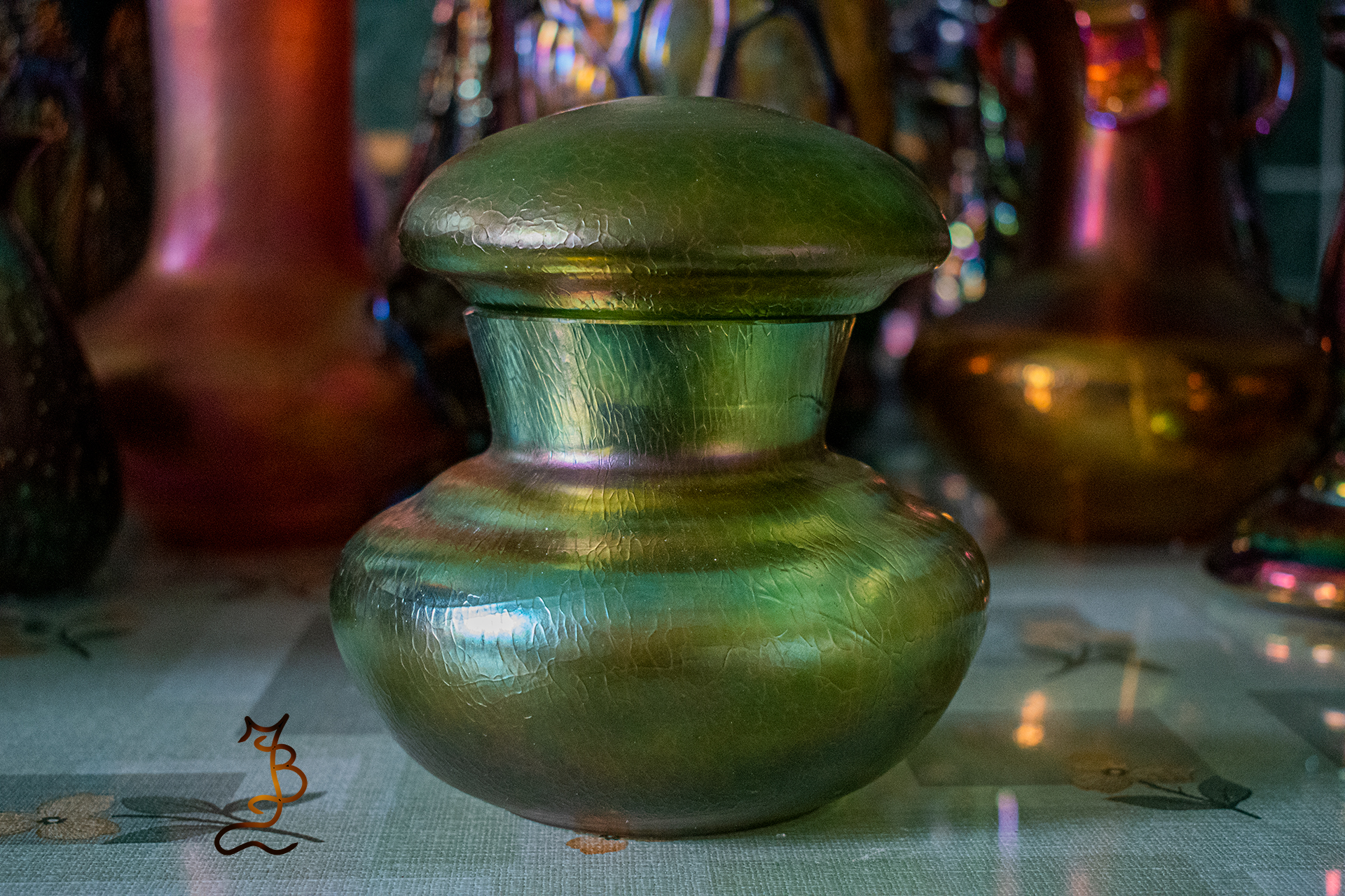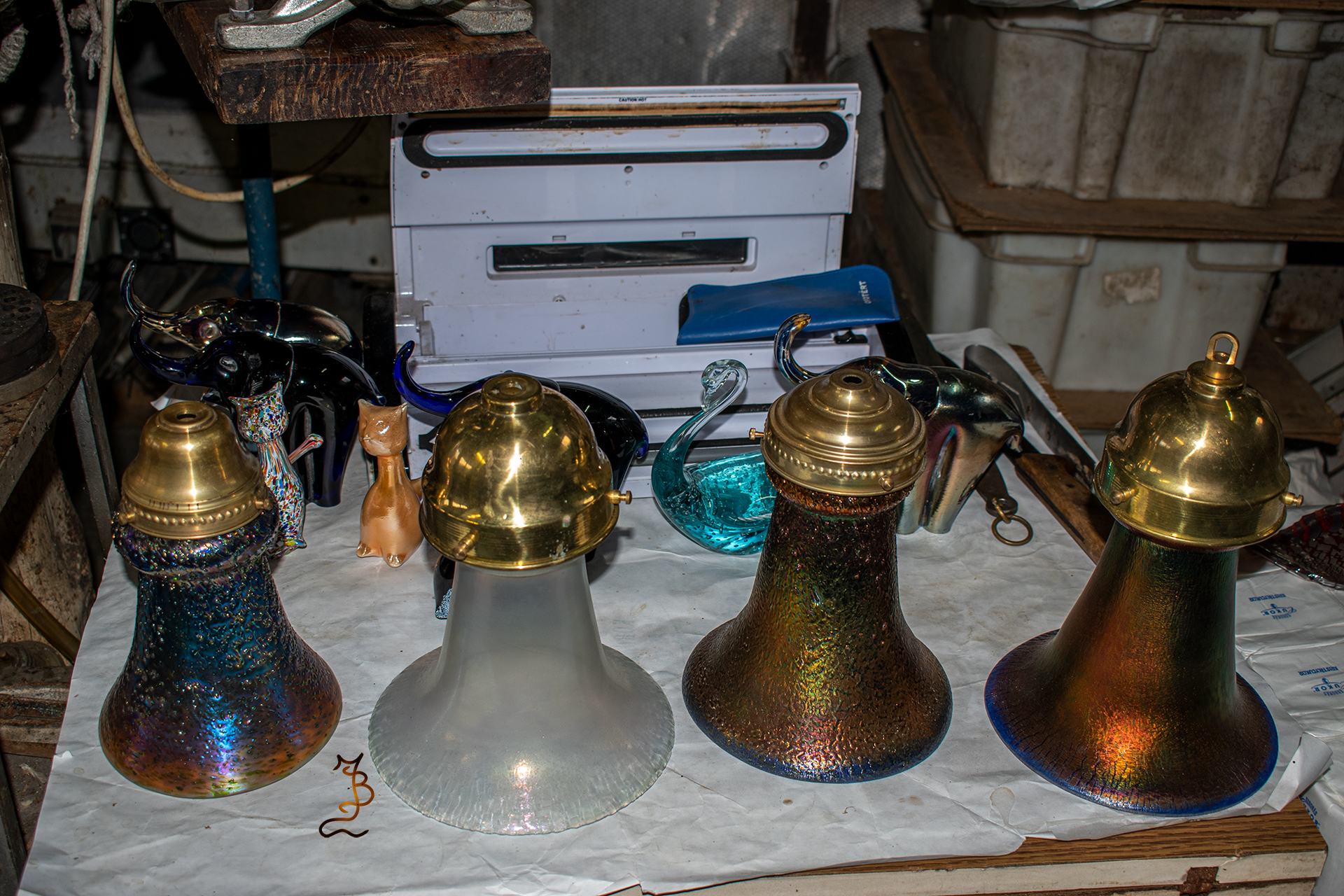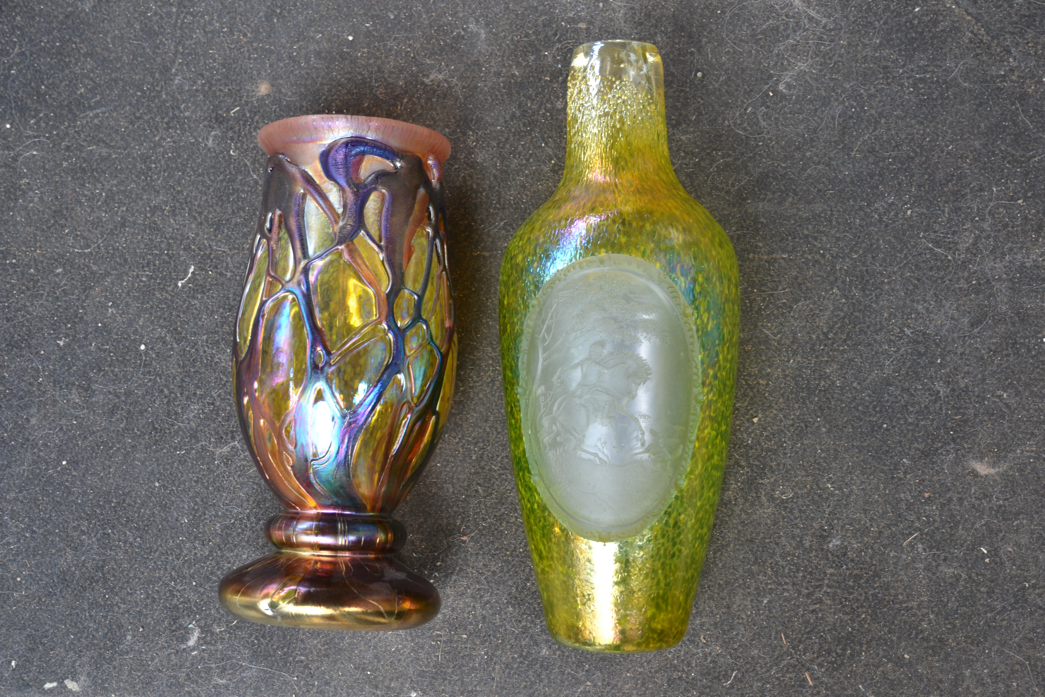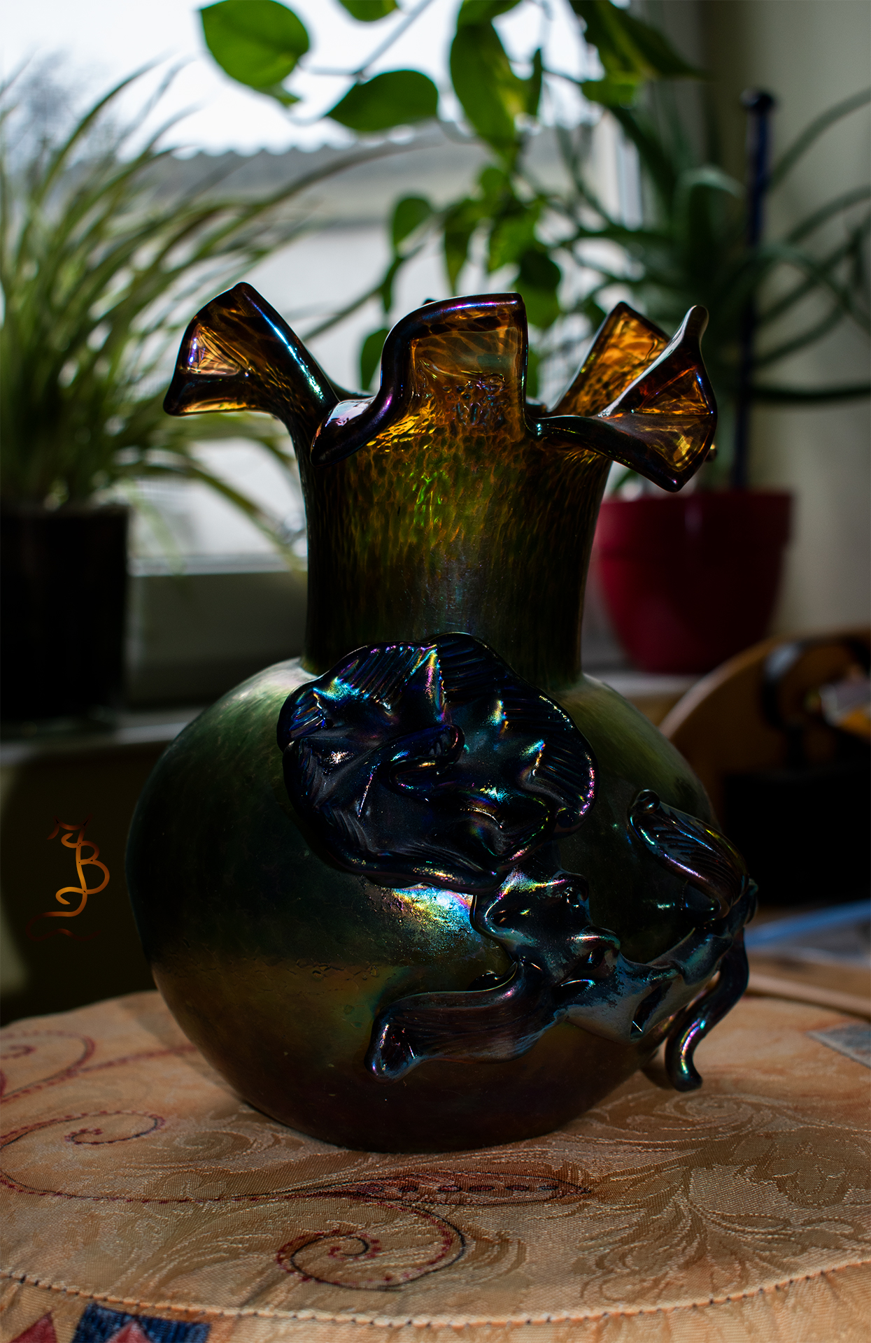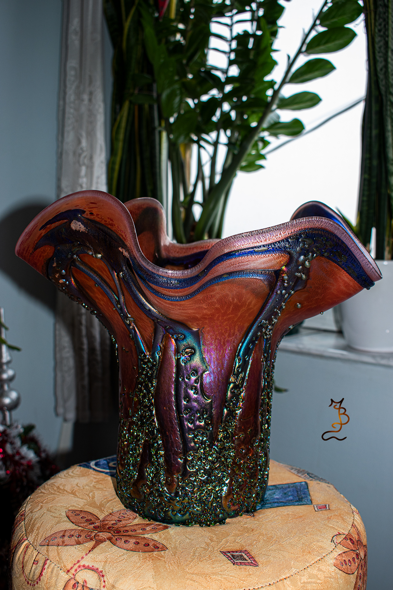 Irizált üvegek, üveg virágok