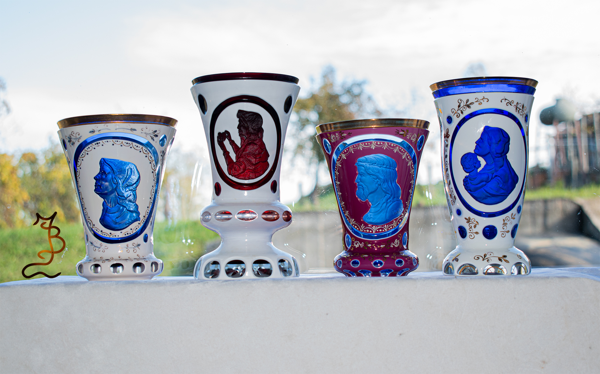 Többrétegű biedermeier stílusú poharak