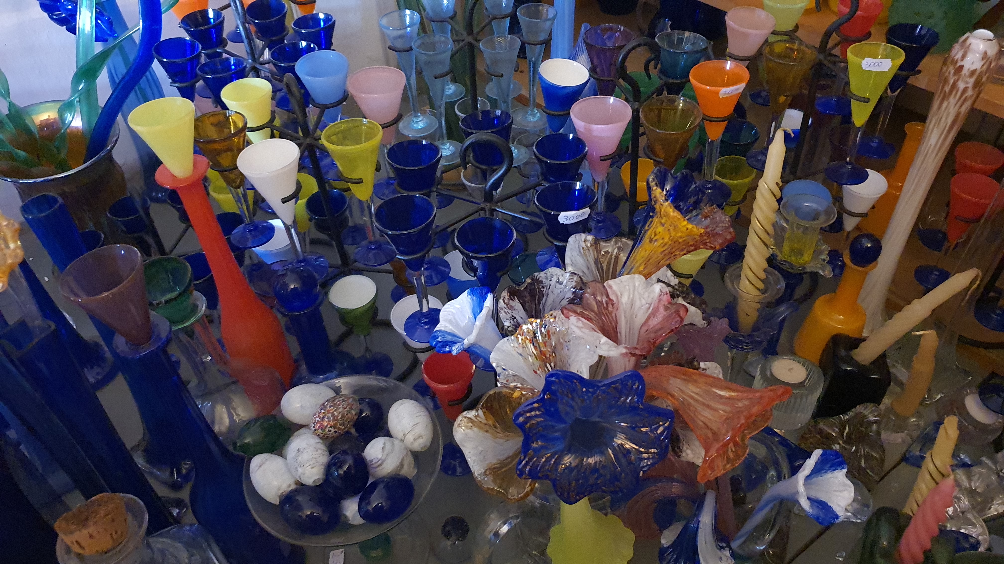 csillárok, papírnehezékek, kelyhek